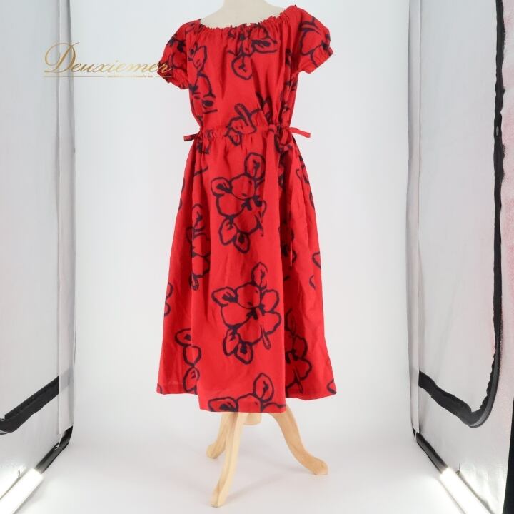 #フラダンス #ダンス衣装 #ワンピース #ドレス #フラダンスドレス #赤色 #かわいい #ウエストリボン #ポリエステル #コットン #サイズF #ダンスカンパニー #コスチューム #夏祭り #衣装レンタル #華やか #女性用 #トルソー #ダンスパフォーマンス #ENUTSU
