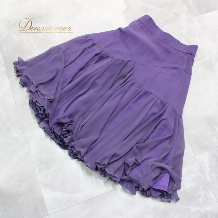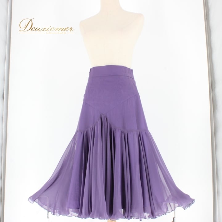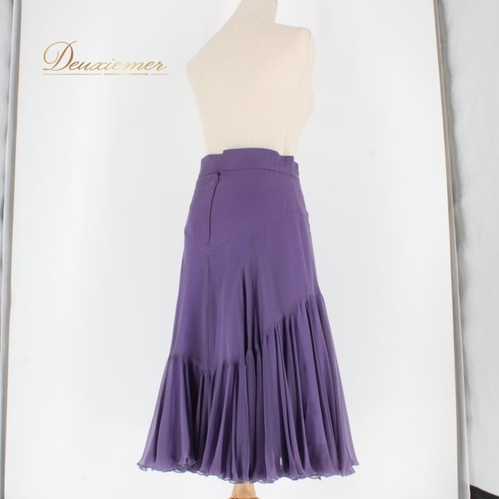 #社交ダンス #ダンス衣装 #スカート #日本製 #バイオレット #大人の魅力 #シンプルデザイン #トルソー #ファスナー仕様 #伸縮性 #ポリエステル #ダンスファッション #二重スカート #ダンススタイル #衣装コーディネート #女性用衣装 #カラフルスカート #ダンスパフォーマンス #総丈71cm #ウエスト34cm #ENUTSU