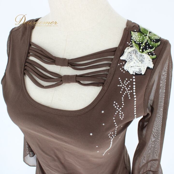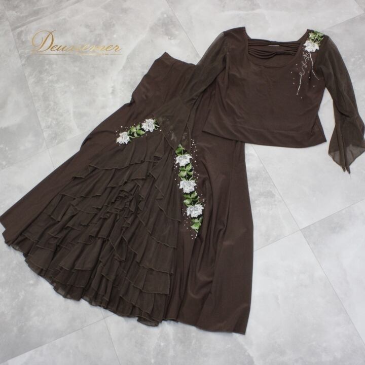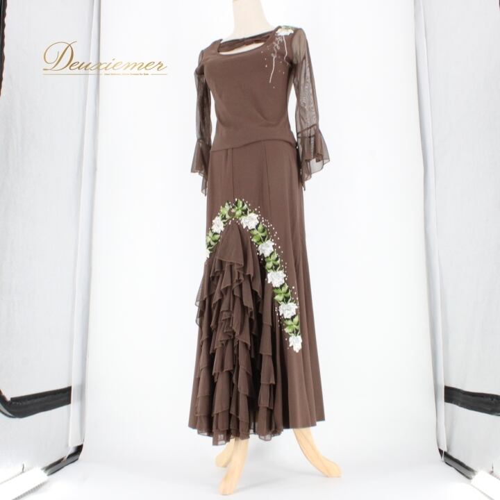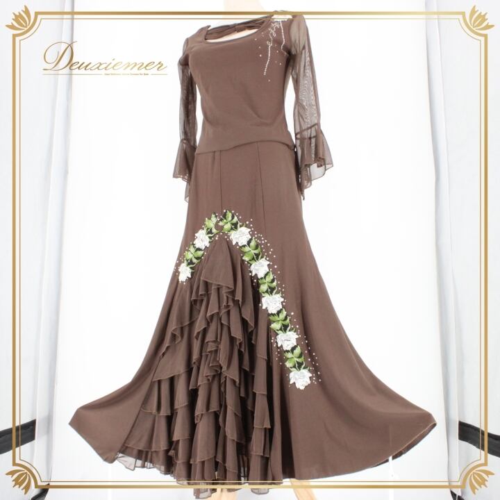 #社交ダンス #ダンス衣装 #ダンスウェア #社交ダンス衣装 #ファッション #ラインストーン #花模様 #トルソー #ブラウン #優雅 #伸縮性 #ウエストゴム #ポリエステル #ポリウレタン #パーティー #特別な日 #衣装セット #スタイル #ダンス #ENUTSU