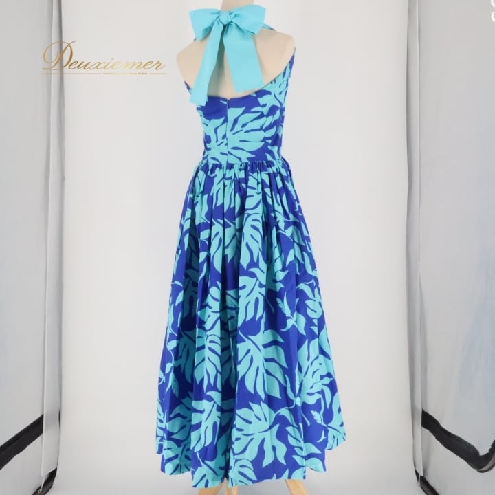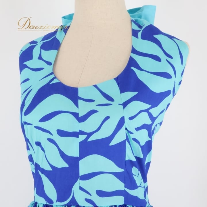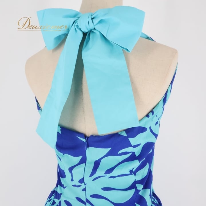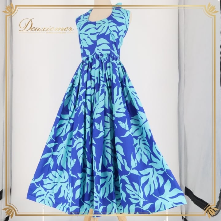 #フラダンス #衣装 #ワンピース #ドレス #ホルターネック #リボン #ブルー #爽やか #パーティー #イベント #ダンス #女性用 #カジュアル #ハワイアン #ビーチ #トルソー #サイズフリー #スタイル #ファッション #ENUTSU