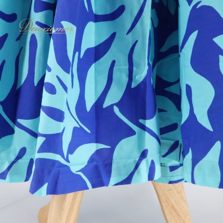 フラダンス 衣装 ワンピース ドレス ブルー系 ホルターネック ワントーン ラウアエ柄 ノースリーブ かわいい 華やか 鮮やか 爽やか 明るい 大胆 青 水色 ハワイアン アロハ ハワイアンプリント フラ ダンス レッスン 練習 レディース おしゃれ