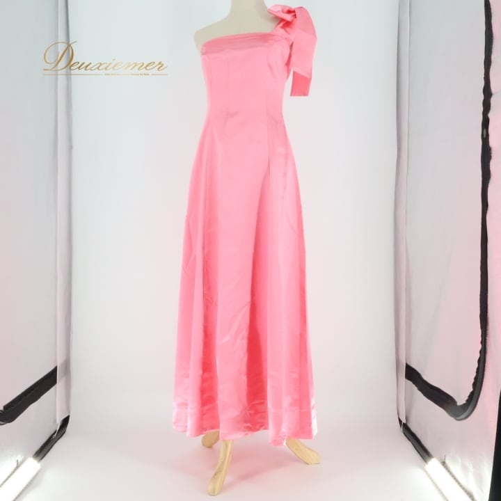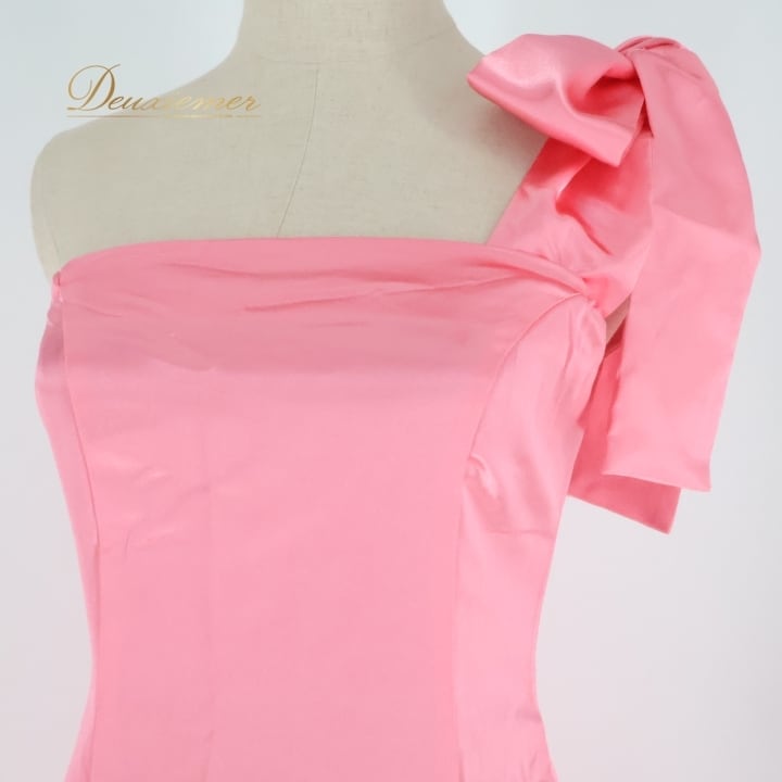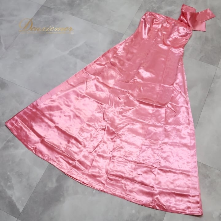 フラダンス 衣装 ワンピース ドレス ピンク系 ワンカラー チューブトップ 2WAY 光沢感 無地 リボン かわいい 華やか 明るい きれい 上品 ハワイアン アロハ フラ ダンス レッスン 練習 フラダンスドレス おしゃれ お呼ばれ パーティー
