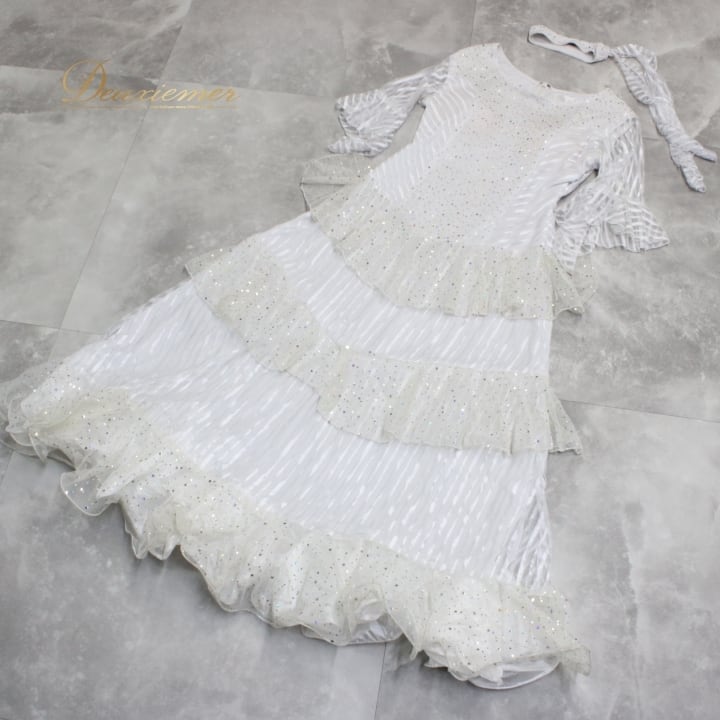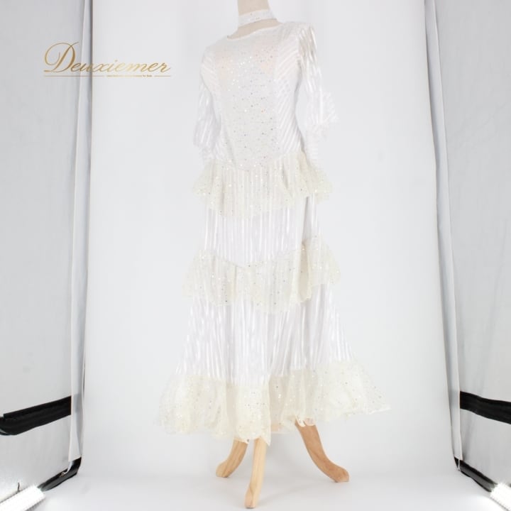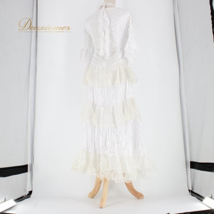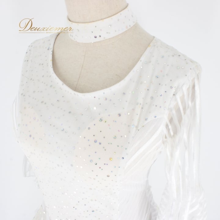 #社交ダンス #ダンス衣装 #ドレス #ホワイトドレス #ファッション #ドレスコーデ #イベント衣装 #女性用 #プリマブティック #チョーカー付き #バレエ #舞台衣装 #ダンスコスチューム #スレンダー #おしゃれ #スタイル #トルソー #コーディネート #春夏ファッション #ENUTSU