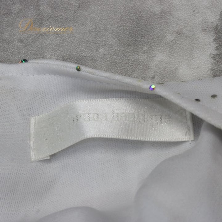 社交ダンス 衣装 スタンダード ドレス ワンピース パーティドレス prima boutique プリマブティック ホワイト系 白 キラキラ レース チョーカー オールホワイト 伸縮性 ウエスト32cm~ 胸パッド ファスナー仕様 パーティー用 かわいい おしゃれ 謝恩会 結婚式 二次会 フォーマル シンプル エレガント 大人女子 成人式 お祝い 10代 20代 30代 中古 美品 おすすめ