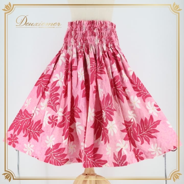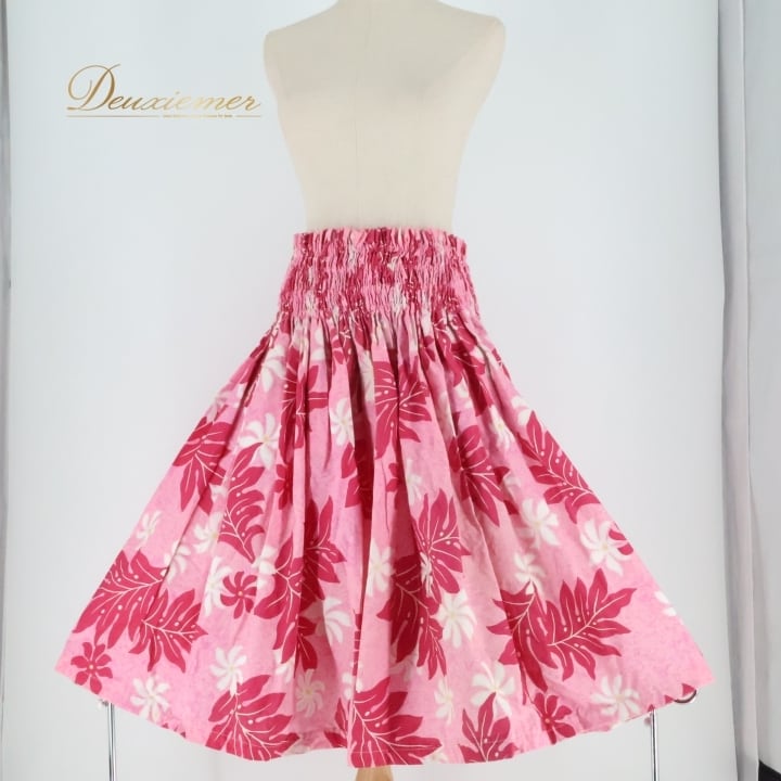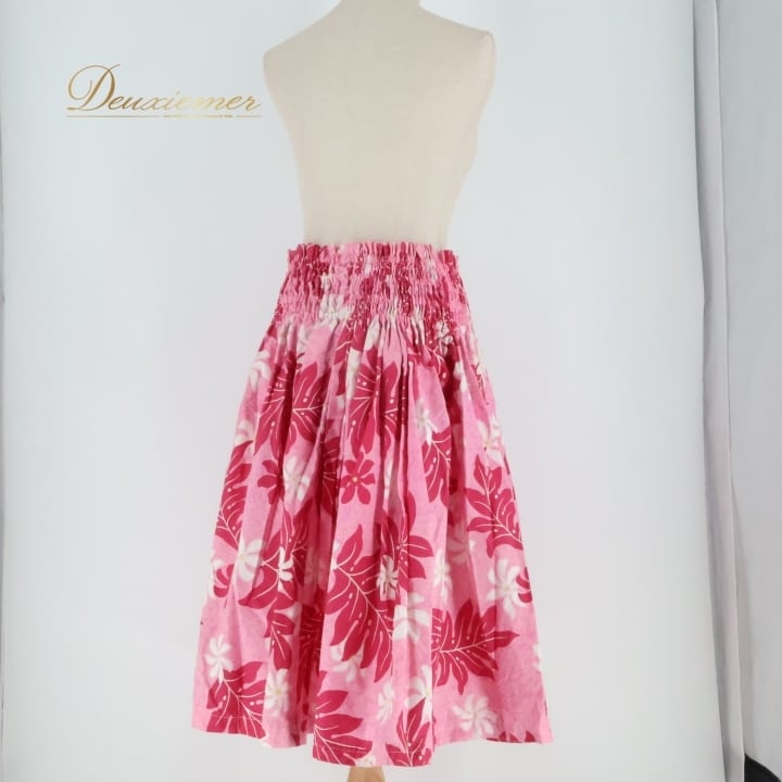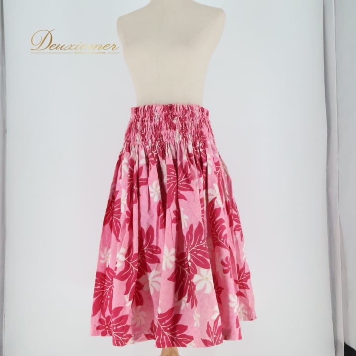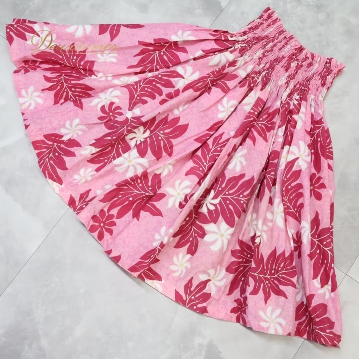 フラダンス 衣装 パウスカート ピンク系 ワントーン ティアレ柄 ラウアエ柄 シングル シンプル 花柄 かわいい 華やか 鮮やか 明るい 赤 白 ハワイアン アロハ ハワイアンプリント フラ ダンス レッスン 練習 アロハスタイル 軽やか