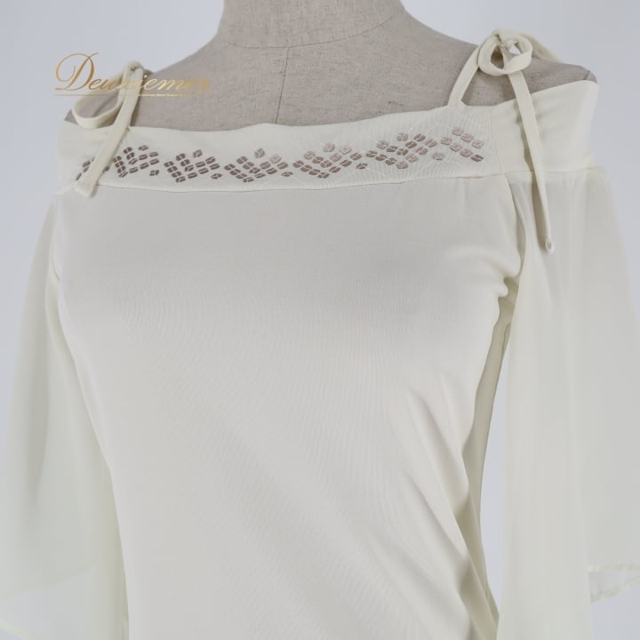 #社交ダンス #ダンス衣装 #トップス #ブラウス #Chacott #チャコット #日本製 #ホワイト #シンプルデザイン #スタイリッシュ #女性ファッション #ダンスウェア #伸縮性 #ファッション #おしゃれ #Mサイズ #ダンススタイル #トルソー #フィット感 #ENUTSU