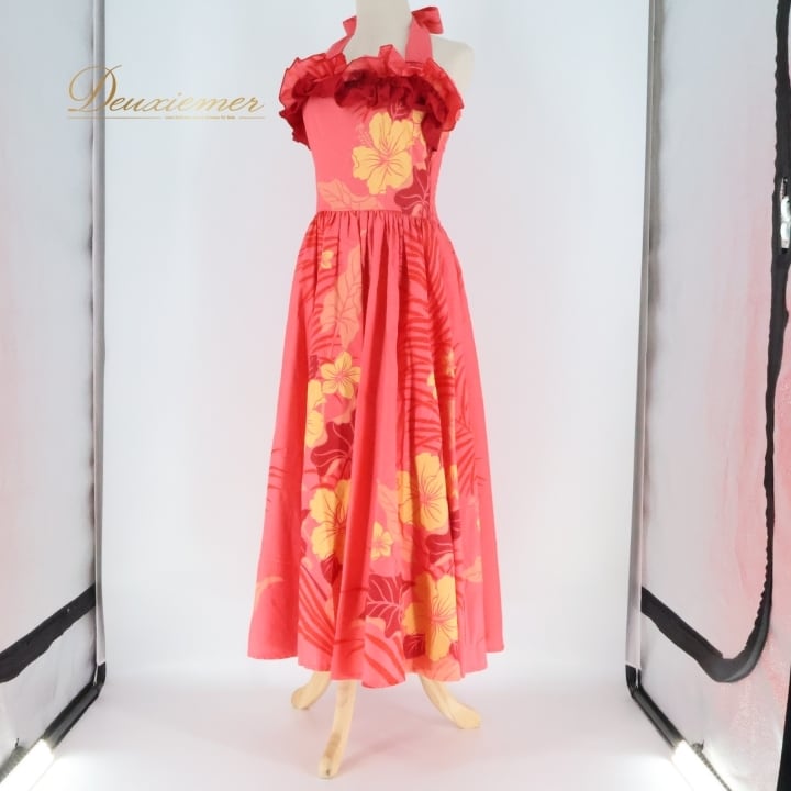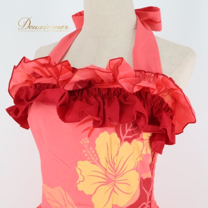 #フラダンス #衣装 #ワンピース #ドレス #ホルターネック #フリル #かわいい #ピンク #オレンジ #ダンス衣装 #パーティー #イベント #祭り #コスチューム #レッスン #フラ #ビーチ #夏 #ファッション #ENUTSU