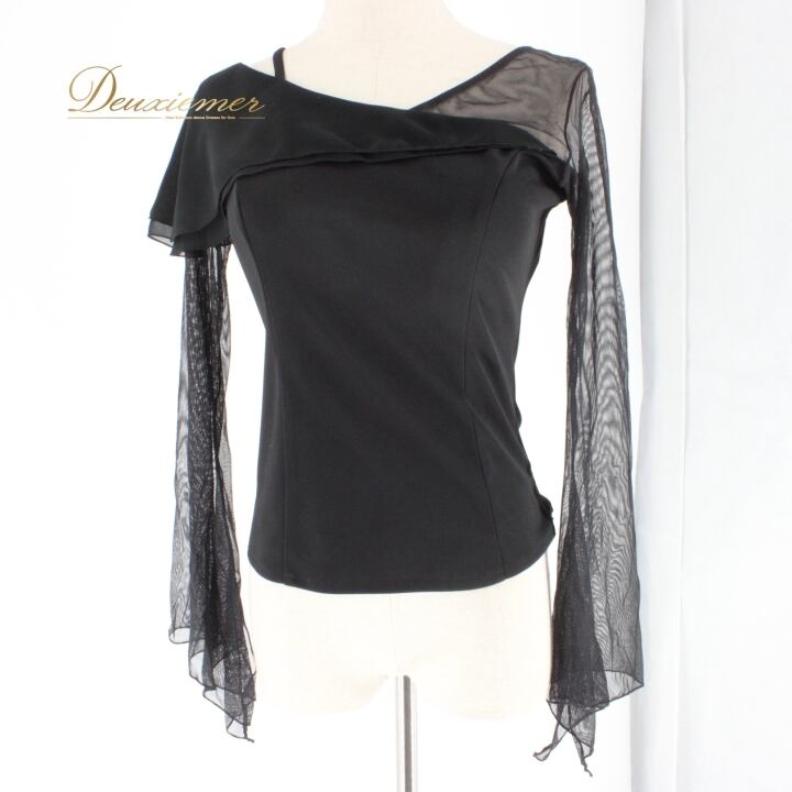 #社交ダンス #ダンス衣装 #ダンストップス #Mサイズ #アシンメトリー #ブラック #ファッション #日本製 #クラシックスタイル #伸縮性 #ポリエステル #ナイロン #ポリウレタン #気品 #トルソー #ダンス用服 #衣装 #ファスナー #社交ダンス衣装 #ENUTSU