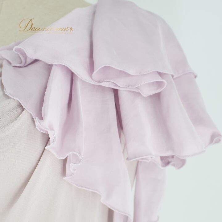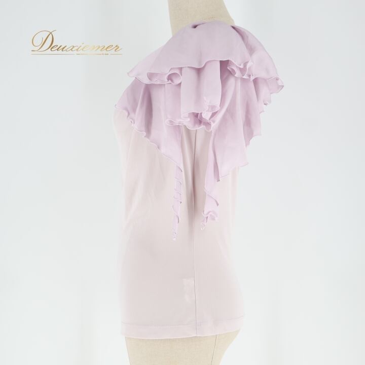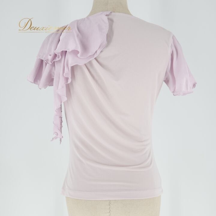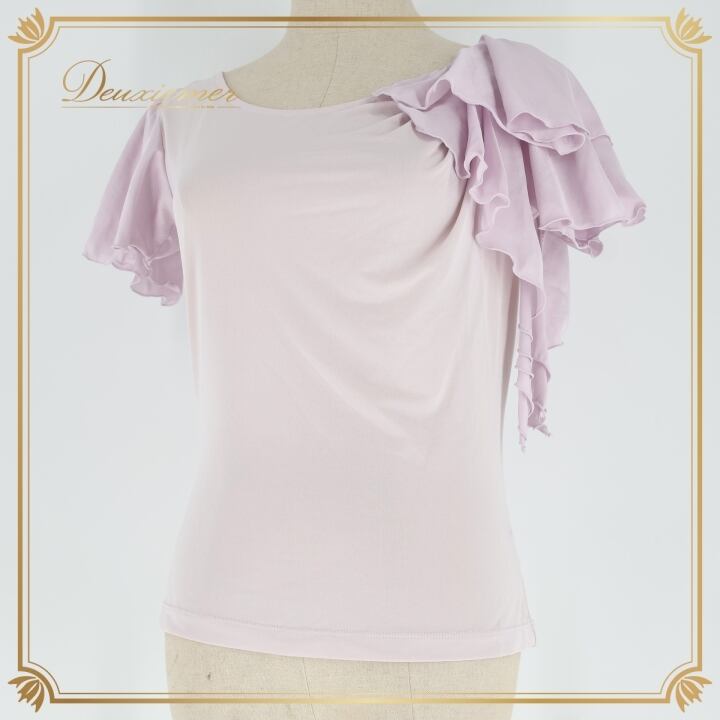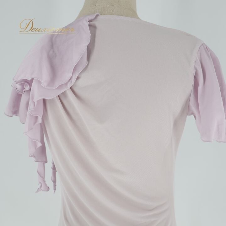 社交ダンス 衣装 トップス ブラウス パープル系 チャコット Chacott 紫 無地 シンプル 淡い 上品 フリル 半袖 日本製 明るい かわいい パーティー ダンス衣装 練習 レッスン イベント ステージ