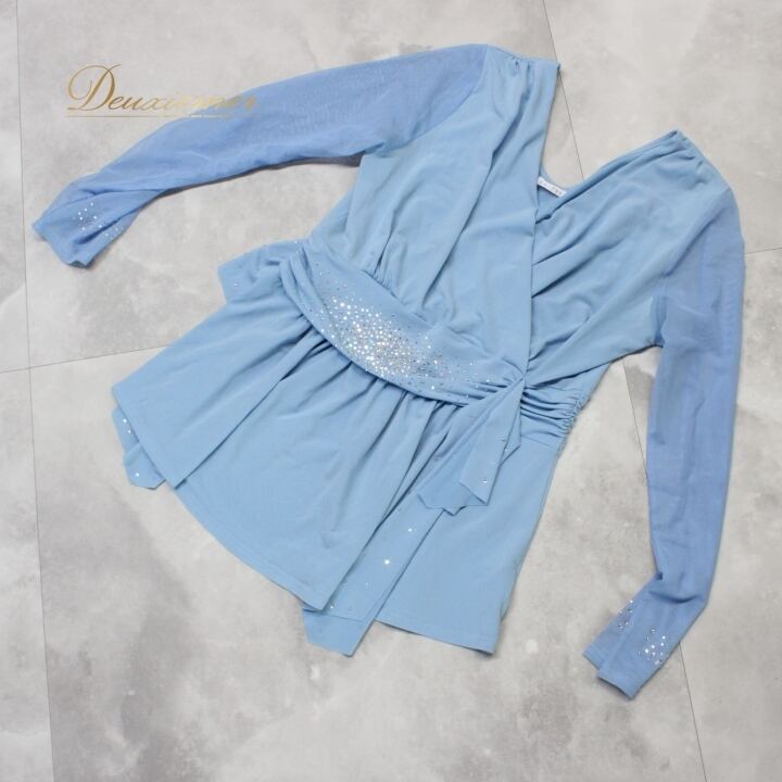 #社交ダンス #ダンス衣装 #ダンスウェア #トップス #Lサイズ #ライトブルー #ラインストーン #ポリエステル #ポリウレタン #伸縮性 #トルソー #ファッション #女性用 #ダンスコスチューム #リハーサル #パフォーマンス #おしゃれ #スポーティ #ダンススタイル #エルプラト #ENUTSU