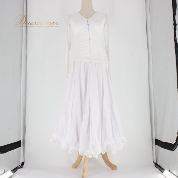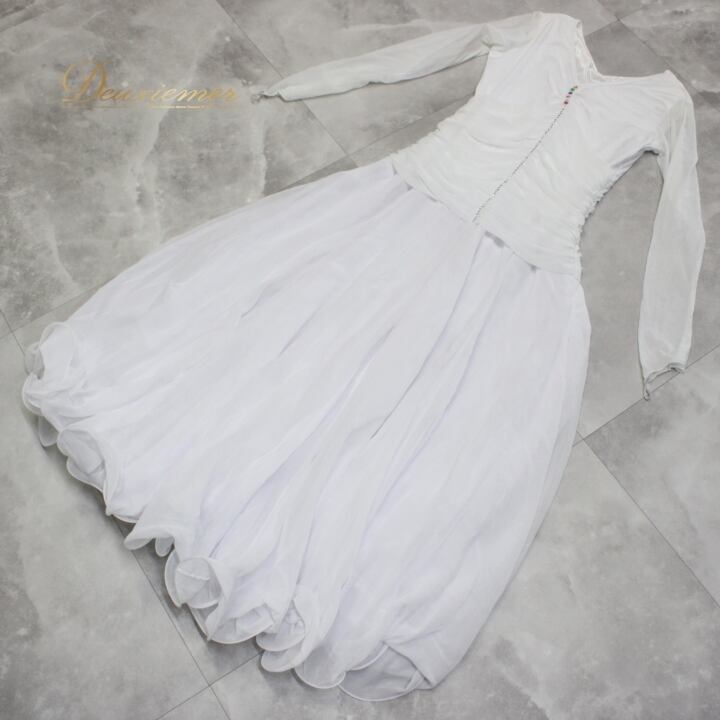#社交ダンス #ダンス衣装 #ダンスドレス #ホワイトドレス #ラインストーン #シンプルデザイン #ダンスファッション #ドレスアップ #伸縮性 #ファスナー #ダンスイベント #ダンスパフォーマンス #おしゃれ #舞台衣装 #トルソー #女性用衣装 #大人のファッション #バレエ #ダンススタイル #ENUTSU