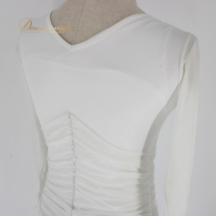 社交ダンス 衣装 スタンダード ドレス ワンピース レッスンウェア パーティドレス 白 ホワイト系 長袖 レース シンプル ステージ衣装 Vネック ダンス衣装 スカート ボリューム 大きい フェミニン かわいい ラインストーン 伸縮性 お洒落 発表会 パフォーマンス 着心地良い シンプルスタイル モダンレッスン ルームウェア ステージパフォーマンス
