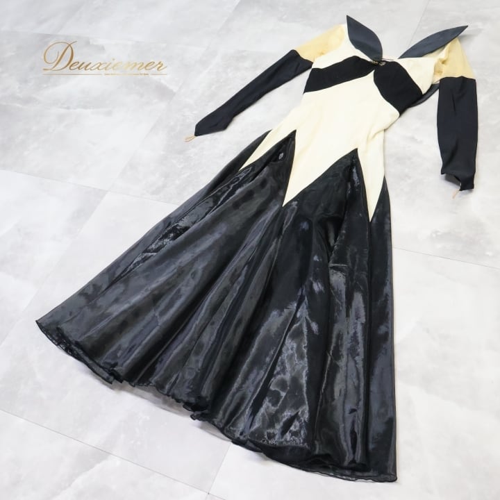#社交ダンス #ダンス衣装 #ワンピース #ドレス #アイボリー #黒 #蝶モチーフ #ファッション #スタイル #女性用 #Mサイズ #ダンスパフォーマンス #社交ダンス衣装 #背面ファスナー #新作 #可愛いデザイン #パーティー #特別な日に #ファッションアイテム #ENUTSU