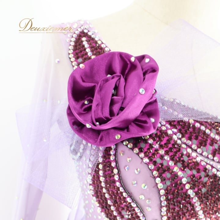 #社交ダンス #ダンス衣装 #ワンピース #ダンスドレス #紫色 #薔薇モチーフ #華やか #スカート #チュール #女性用トルソー #ダンスレッスン #フィットネス #ダンスパフォーマンス #衣装 #ファッション #パーティードレス #エレガント #クール #ダンススタイル #ENUTSU