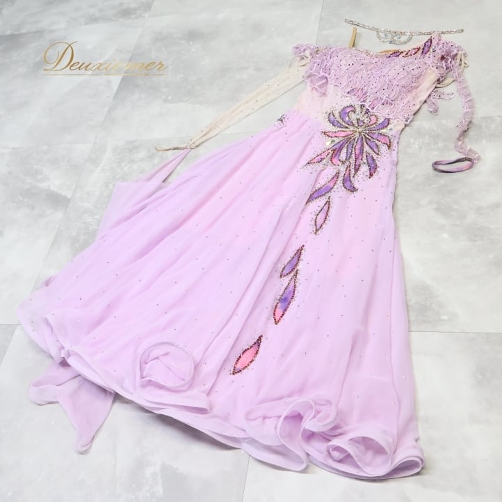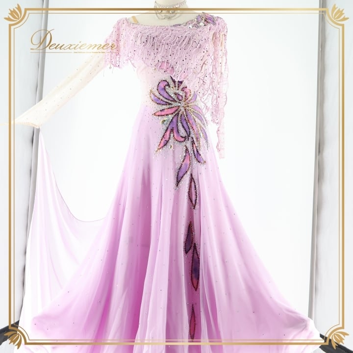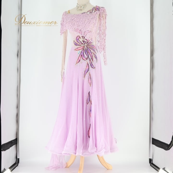 社交ダンス 衣装 スタンダードドレス ワンピース ドレス スタンダード 紫 ラベンダー フロート デモ 競技 ダンス パーティ 発表会 パープル系 明るめ紫 高級感 競技用 フォーマル コスチューム