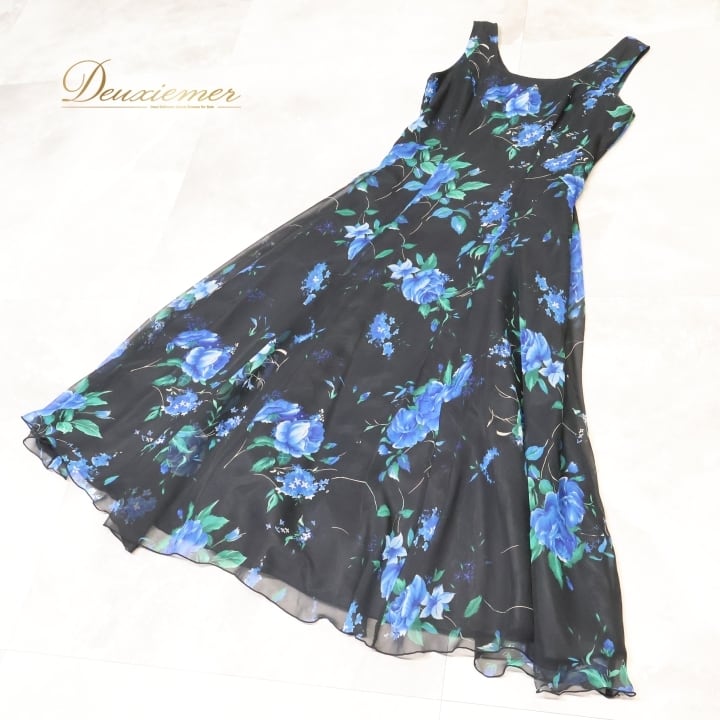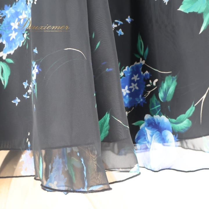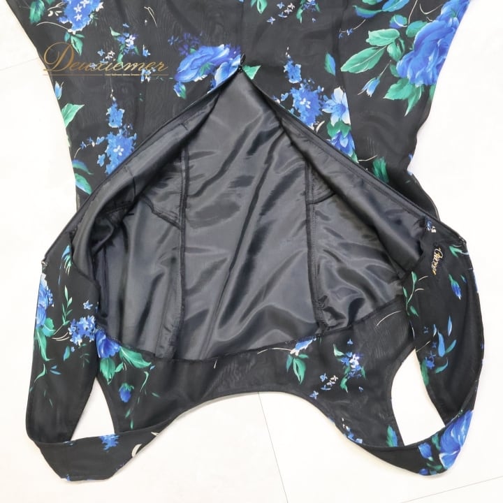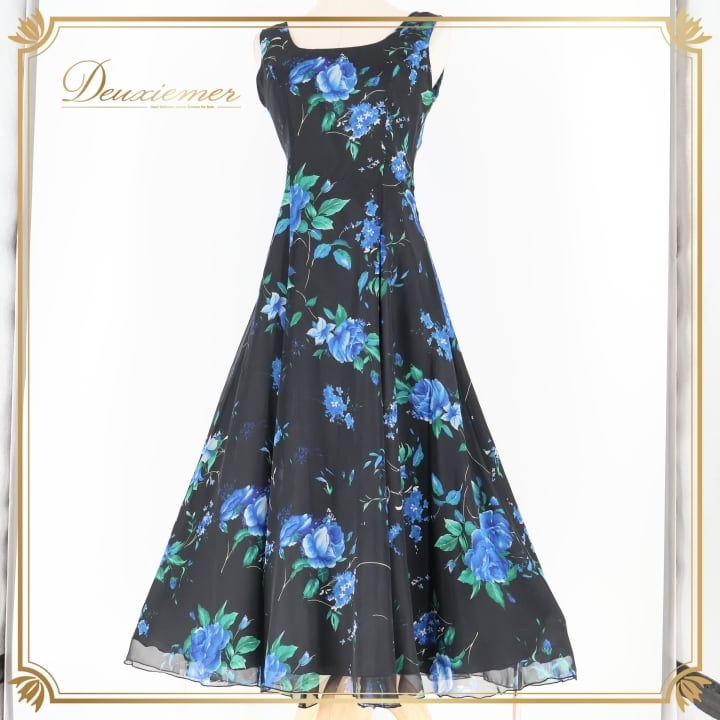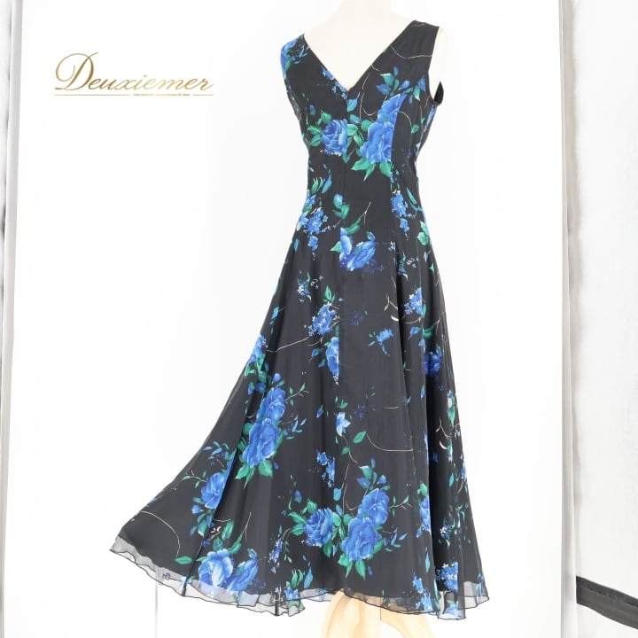 社交ダンス 衣装 チャコット Chacott ワンピース ドレス パーティ 発表会 パーティドレス 黒 青 花柄 軽い 薄い レース 日本製 ブラック系 ブルー系 おしゃれ ふんわり かわいい 上品 フェミニン
