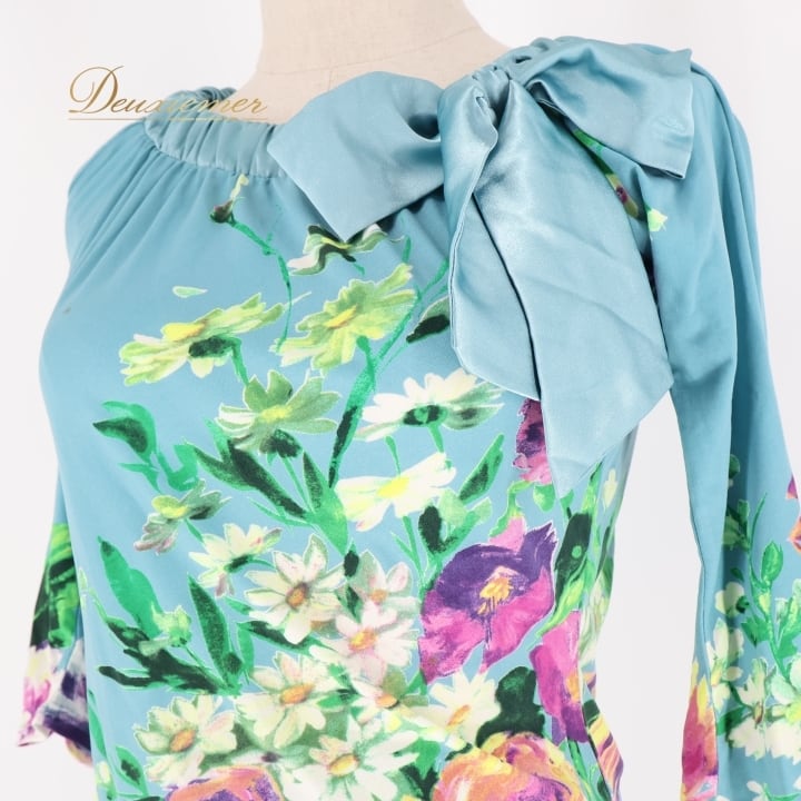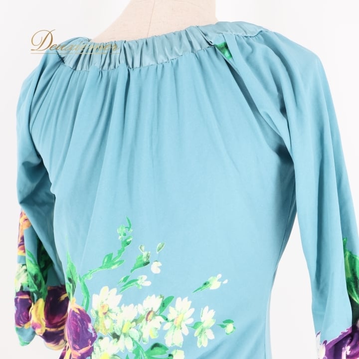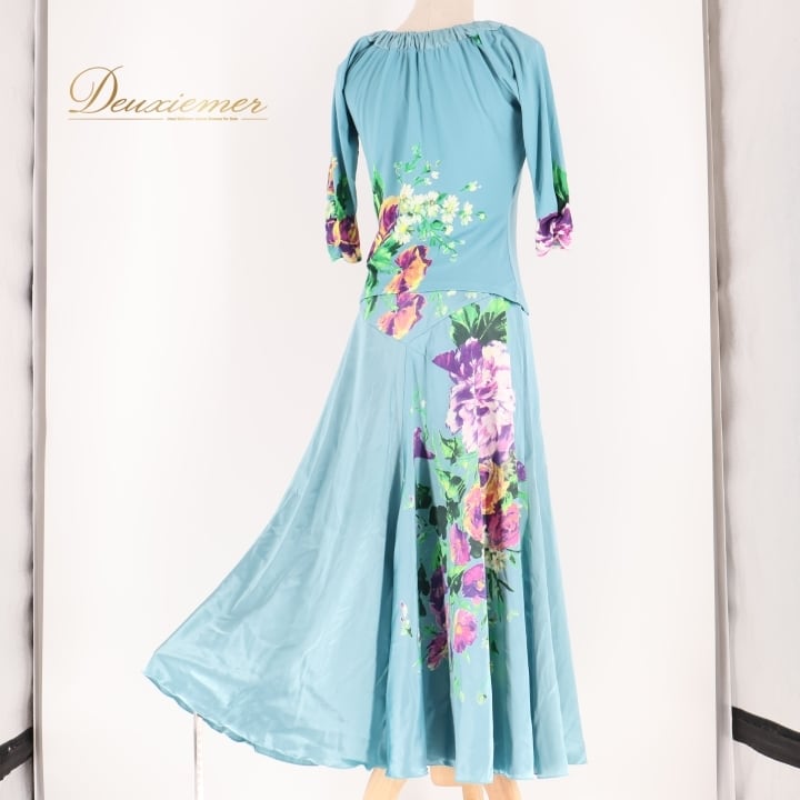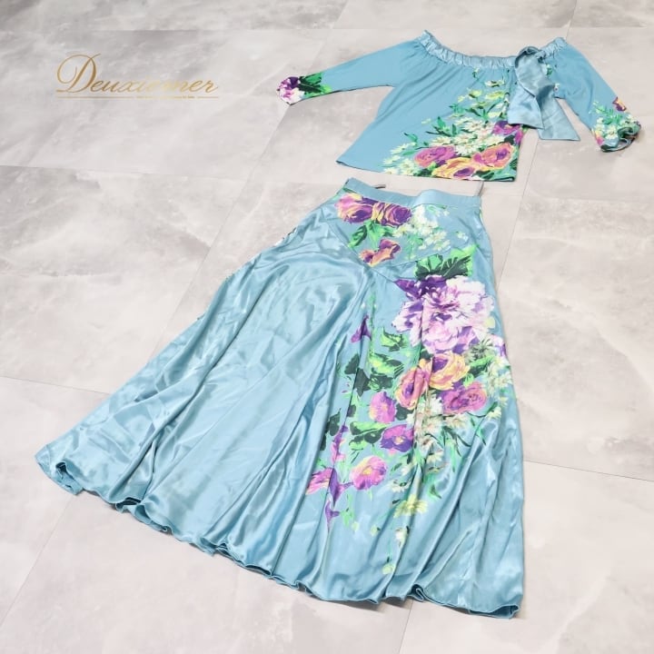 社交ダンス 衣装 チャコット Chacott トップス ブラウス スカート ツーピース セットアップ 水色 光沢 花柄 レッスン パーティ 発表会 軽い リボン ブルー系 グリーン系 ピンク系 フォーマル おしゃれ エレガント レディース 日本製 薄手