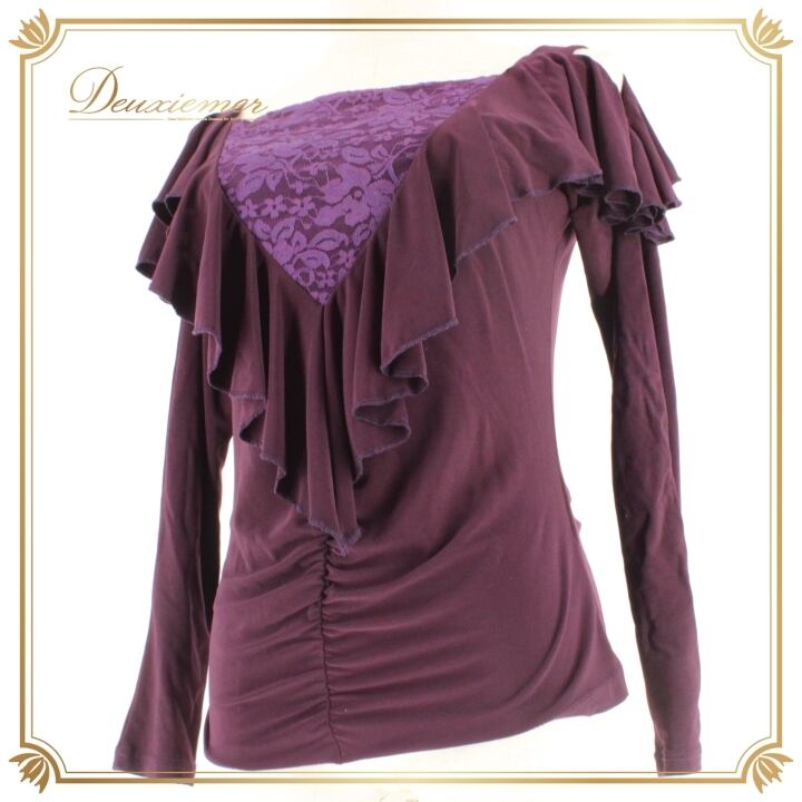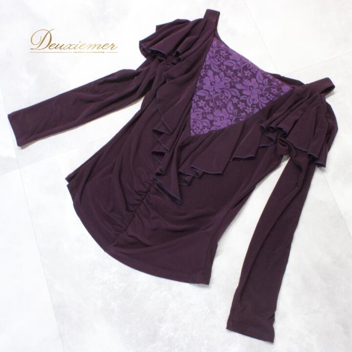 #社交ダンス #ダンス衣装 #トップス #ディープパープル #花柄レース #シック #ポリエステル #伸縮性 #ファッション #ダンスファッション #女性用 #トルソー #ミステリアス #レディースファッション #ダンス衣装コーデ #舞台衣装 #社交ダンス用品 #おしゃれ #ストレッチ #ENUTSU