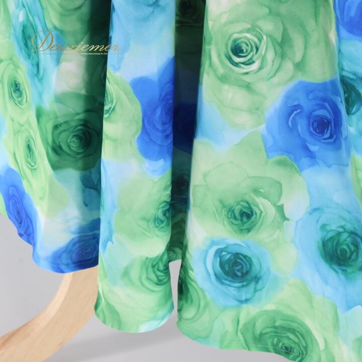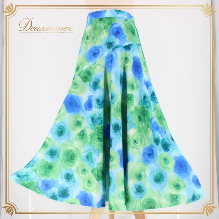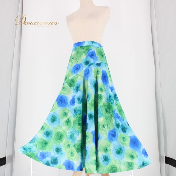 社交ダンス 衣装 スタンダード スカート レッスンウェア レディース ブルー系 グリーン系 SEKINE セキネ 花柄 バラ 薔薇 練習着 水色 黄緑 青 エレガント ドレス 大人用 ダンスウェア フラワープリント 薄手 伸縮性 ポリエステル製 舞台服 アーティスティック 踊り用 おしゃれ デザイン コスチューム ファッション スカートスタイル レディース衣類 スポーティ カジュアル シーズン問わず