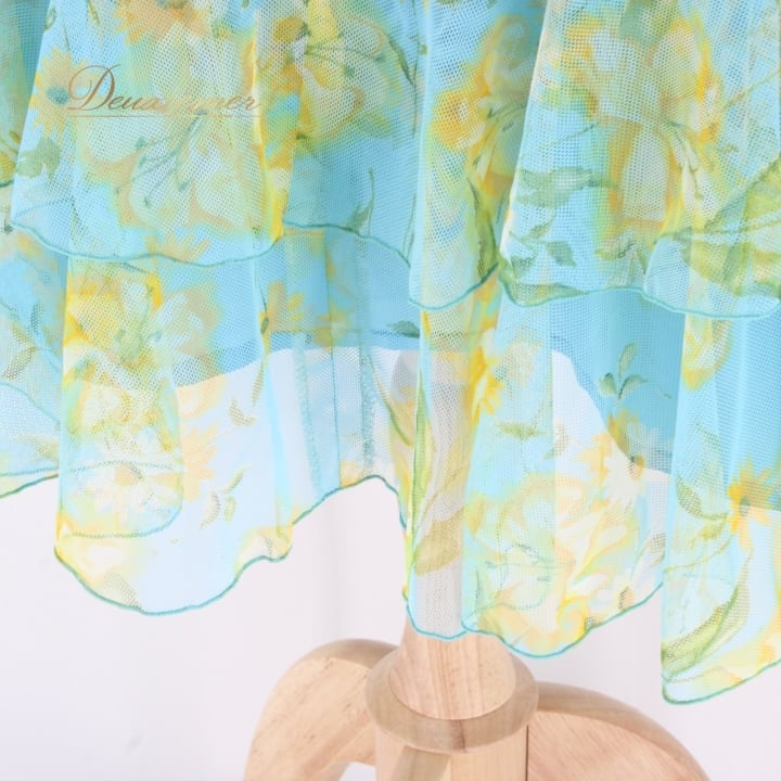 社交ダンス 衣装 スタンダード スカート レッスンウェア 水色 黄色 ブルー系 イエロー系 レース 花柄 練習着 透け感 フェミニン グリーン系 フレアスカート 薄手 おしゃれ 女性用 ダンス衣装 スポーツウェア カジュアル 体型カバー 練習用ウェア フラワープリント ストレッチ かわいい 着心地 ゆったり フェミニンスタイル スカート丈 フレッシュ 夏向け デイリーユース