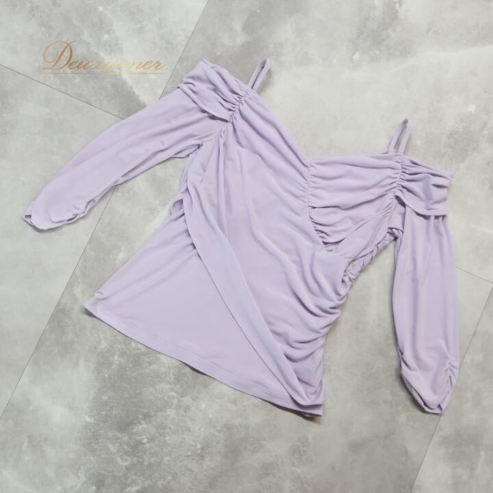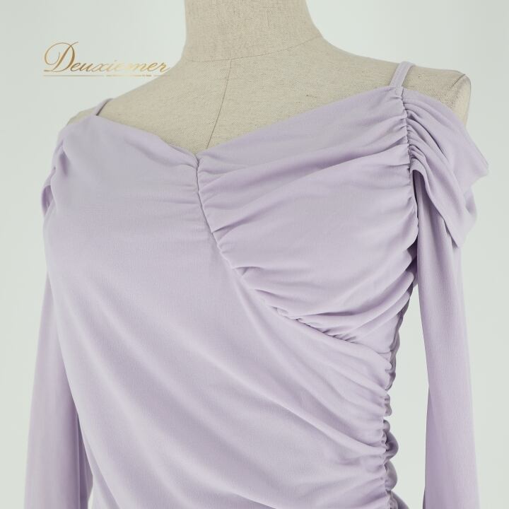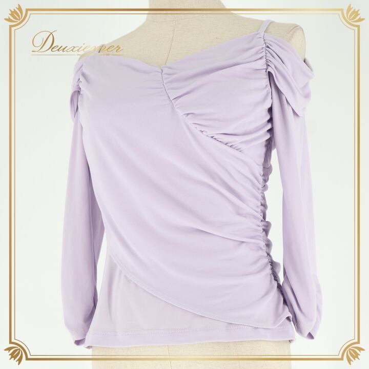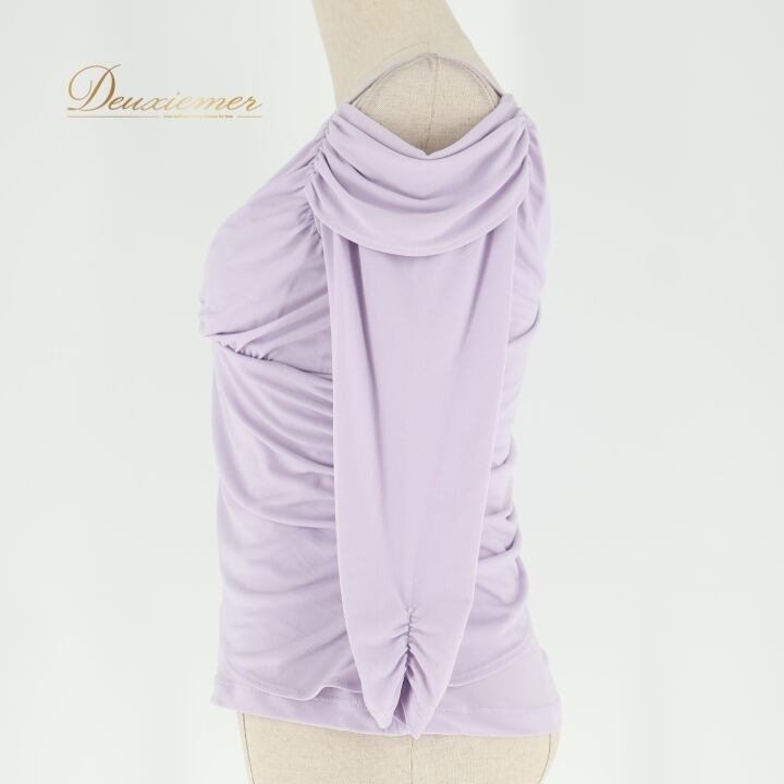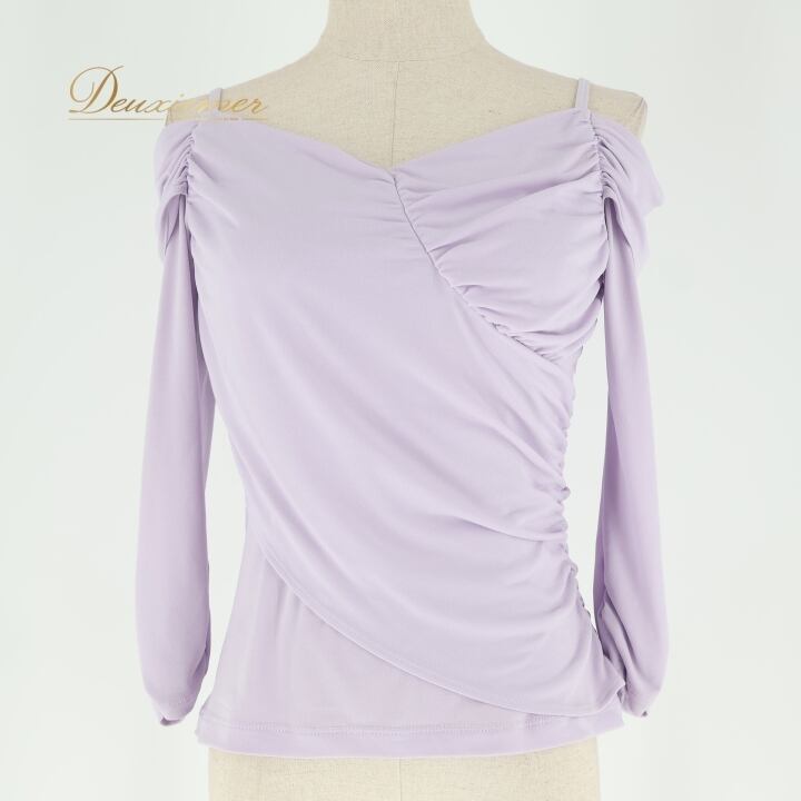 社交ダンス 衣装 トップス ブラウス パープル系 チャコットロイヤルダンス Chacott ROYAL DANCE 紫 無地 シンプル 練習 レッスン 日本製 明るい 淡い 上品 かわいい ダンス衣装 イベント ステージ オフショルダー パーティー