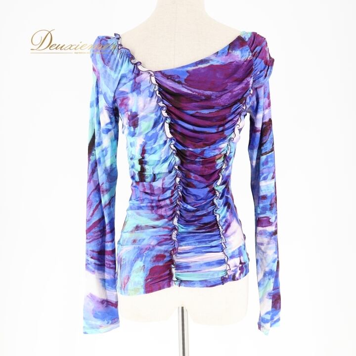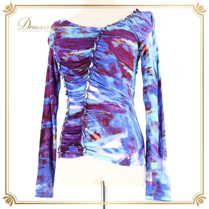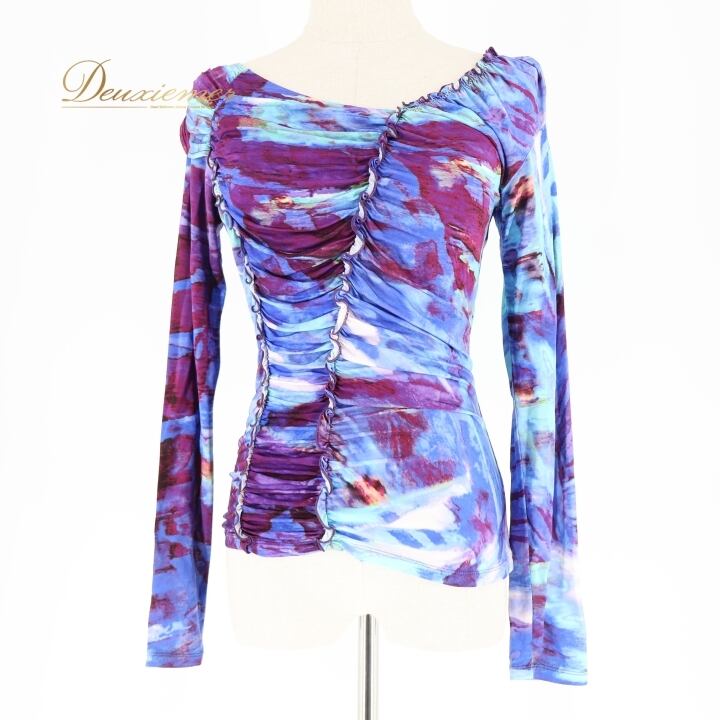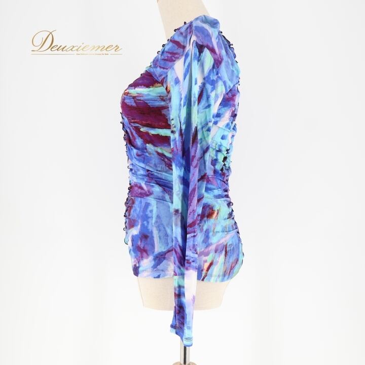 社交ダンス 衣装 トップス ブラウス ブルー系 チャコットロイヤルダンス Chacott ROYAL DANCE 青 緑 白 紫 練習 レッスン 伸縮 ストレッチ パーティー 鮮やか 柄 模様 日本製 上品 かわいい グリーン系 ホワイト系 パープル系