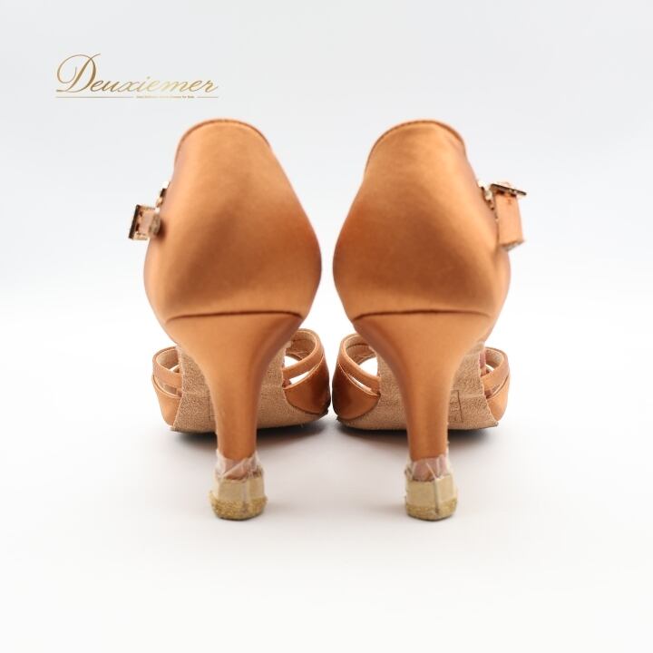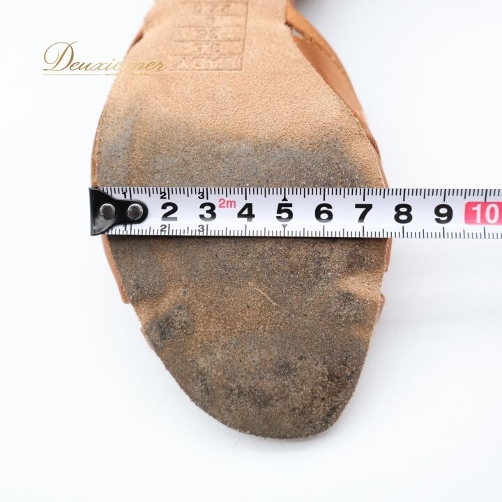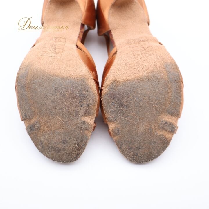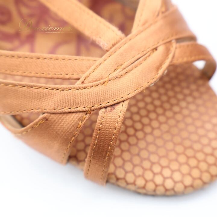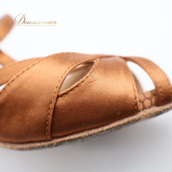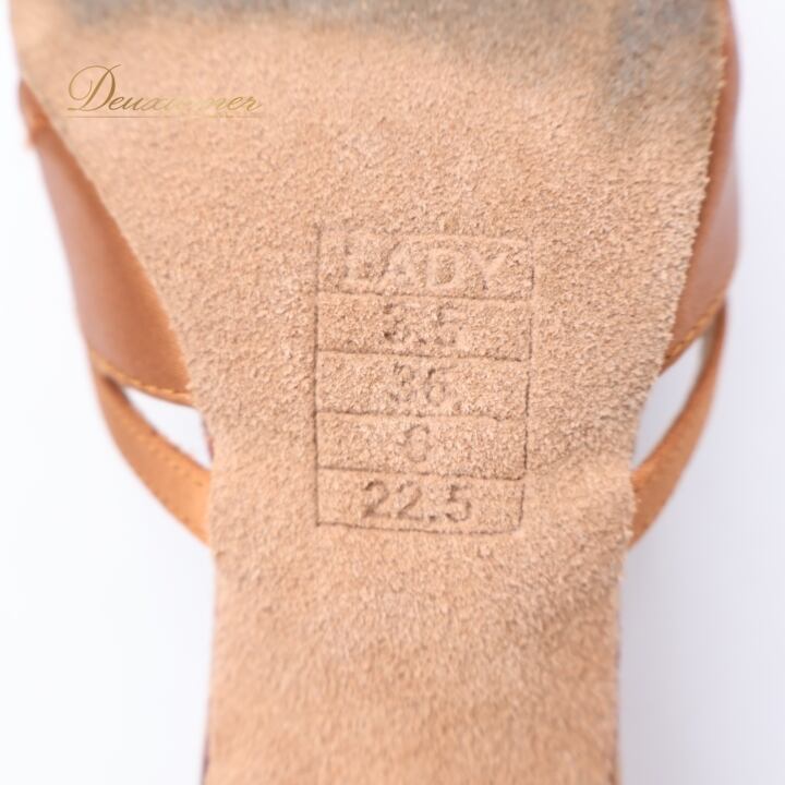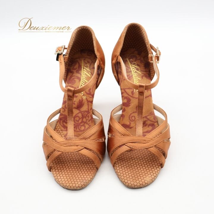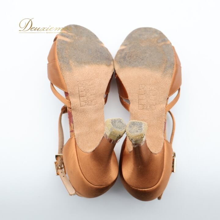 社交ダンス 衣装 ラテン シューズ 22.5cm ブラウン系 Ads 靴 くつ ヒール レディース ストラップ 茶 明るい 光沢 上品 練習 レッスン イベント ステージ かわいい ダンス衣装 ラインストーン キラキラ