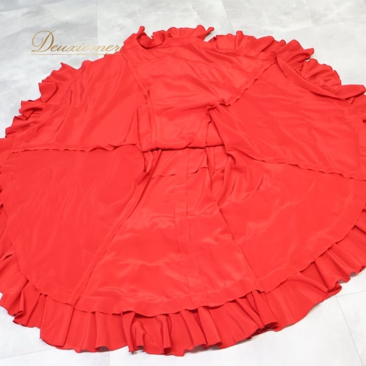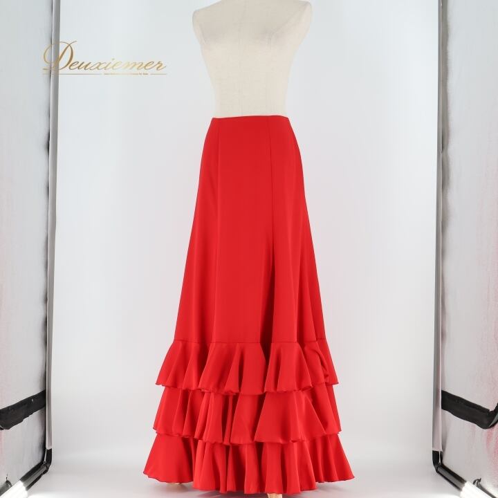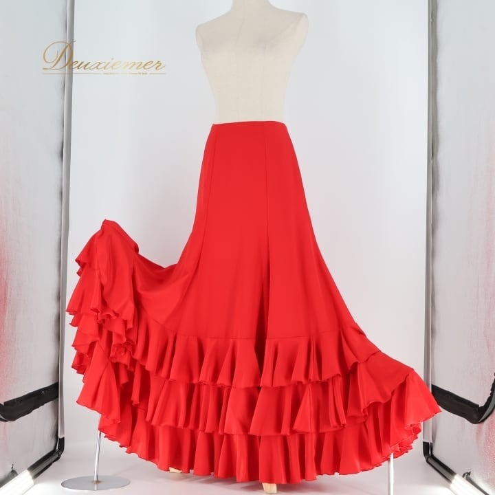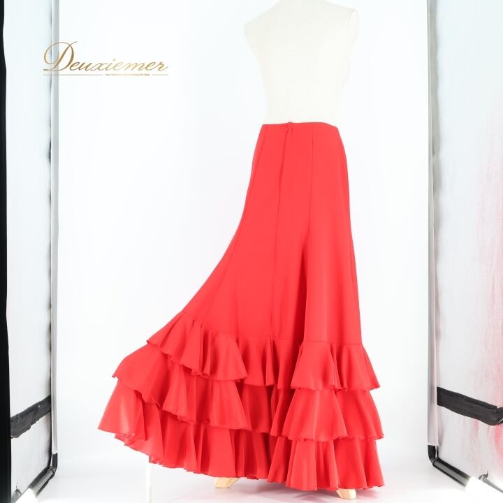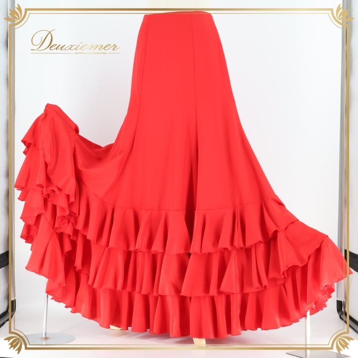 フラメンコ 衣装 ファルダ スカート 赤 ボランテ フリル 無地 レッスン 練習着 高橋家 ダンス パーティ 発表会 レッド系 フラメンコスカート ボランテスカート レッスンウェア ダンス衣装 発表会衣装 フリル段々 赤系 フラメンコ衣装