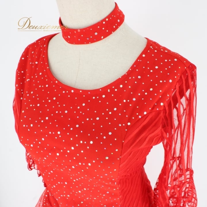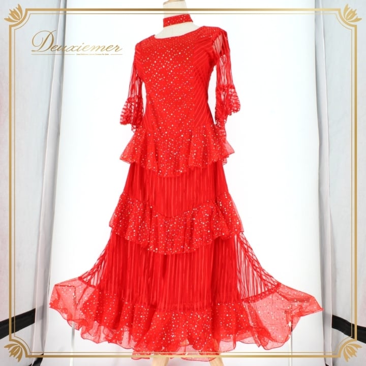 #社交ダンス #ダンス衣装 #ダンスドレス #レッドドレス #ホログラム #プリマブティック #ファスナー仕様 #伸縮性 #ウエストサイズ #オシャレ #トルソー #女性用 #ダンスファッション #パーティードレス #コスチューム #特別な日 #パフォーマンス #ダンススタイル #踊る喜び #DressToImpress #ENUTSU