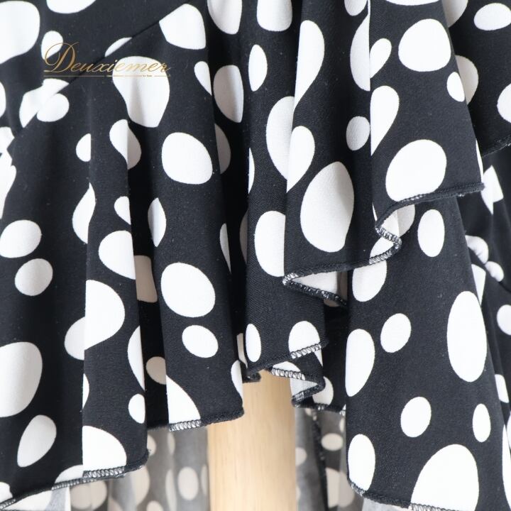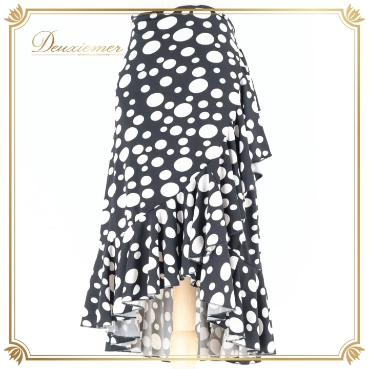 フラメンコ 衣装 巻きスカート ラップスカート ファルダ スカート イチオク ICHIOKU 水玉 ドット 黒 白 フリル 伸縮 ストレッチ ブラック系 ホワイト系 レディス スカート おしゃれ ダンス 可愛い 軽量