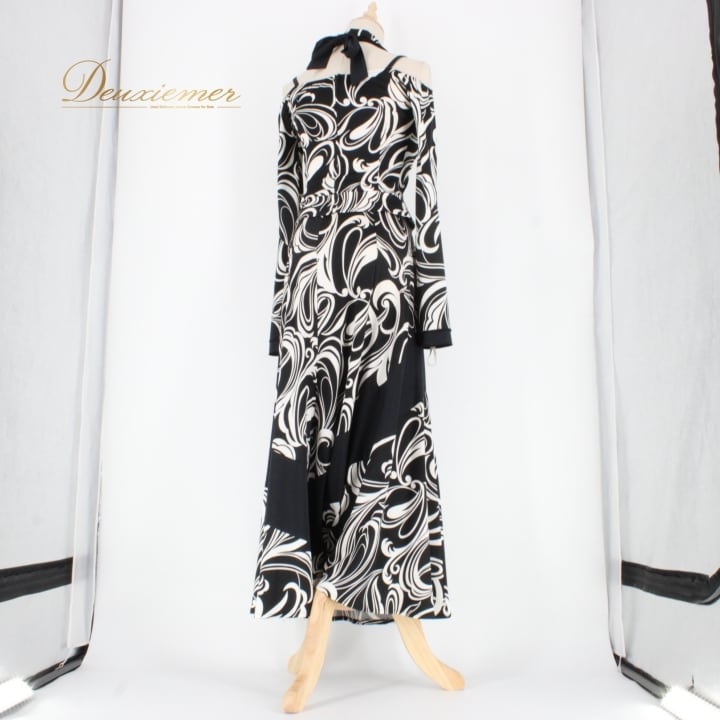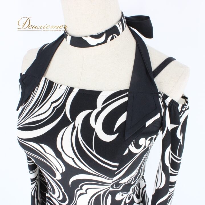 社交ダンス 衣装 スタンダード 上下セット ツーピース パーティ衣装 白 黒 サン・ヨシムラ ホワイト系 ブラック系 長袖 ホルターネック モダンダンス セットアップ ダンスドレス おしゃれ 女性用 派手 シンプル ストレッチ 体型カバー サイズM 高品質 日本製 パーティー カジュアル フォーマル