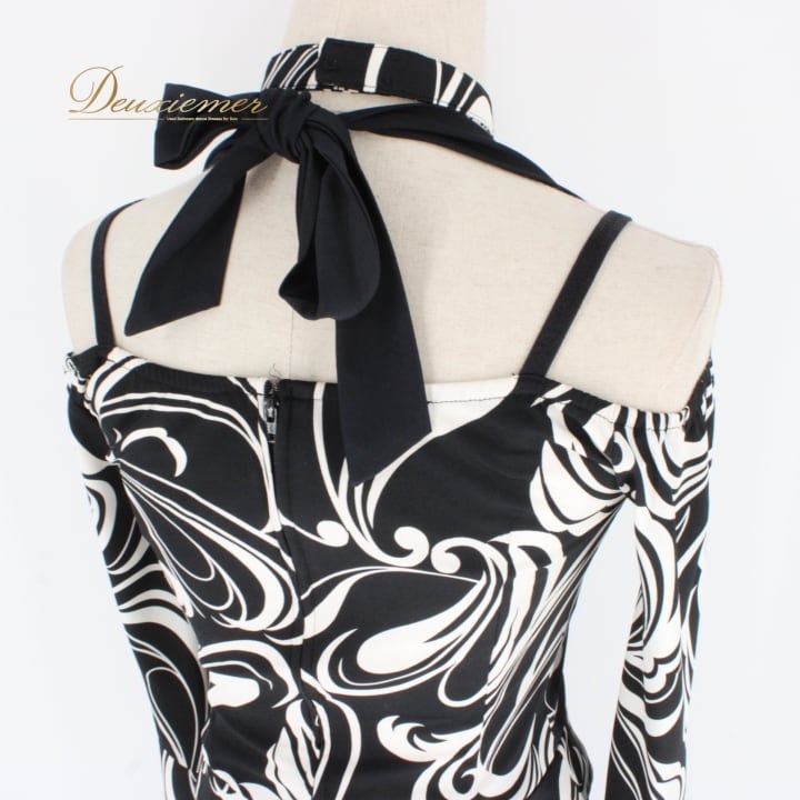 #社交ダンス #ダンス衣装 #セットアップ #日本製 #ブラックホワイト #ポリエステル #ポリウレタン #ウエストゴム #伸縮性 #ファスナー #トルソー #女性用 #ダンスファッション #ダンススタイル #ダンスコーデ #社交ダンス衣装 #おしゃれ #衣装販売 #イベント衣装 #ENUTSU