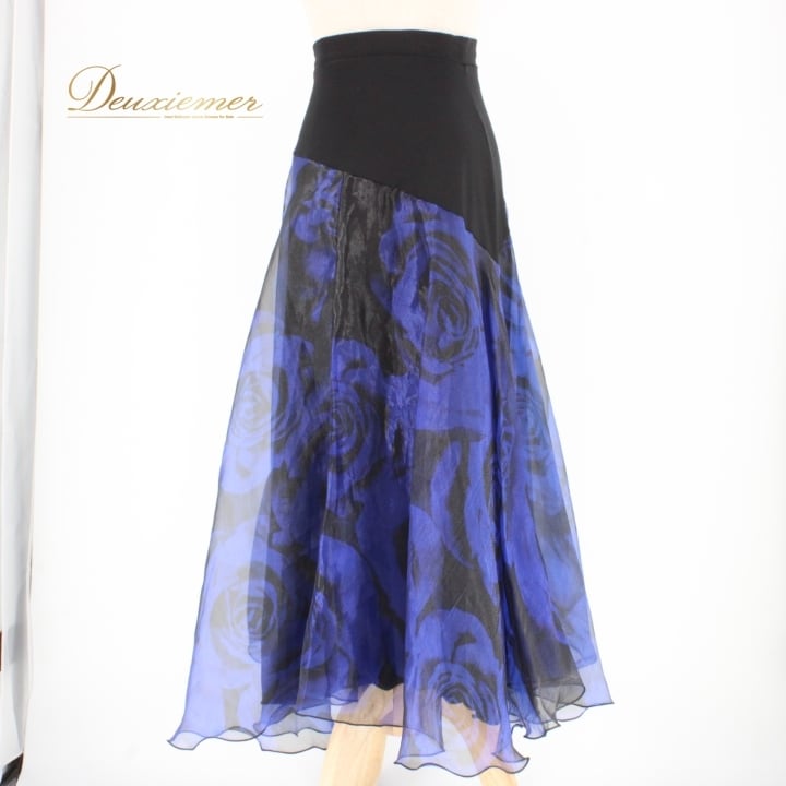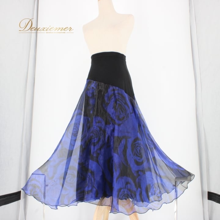 #社交ダンス #ダンス衣装 #スカート #花柄 #ブラック #ブルー #ウエストゴム #伸縮性 #ポリエステル #ポリウレタン #ダンスファッション #コスチューム #トルソー #女性用 #ダンススタイル #パーティー衣装 #おしゃれ #ダンスコーデ #シックなデザイン #ENUTSU
