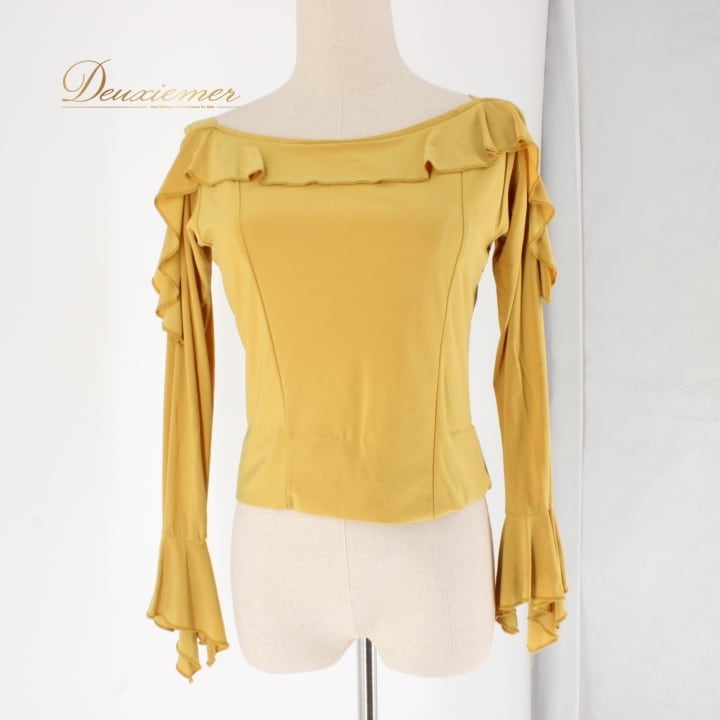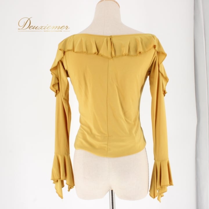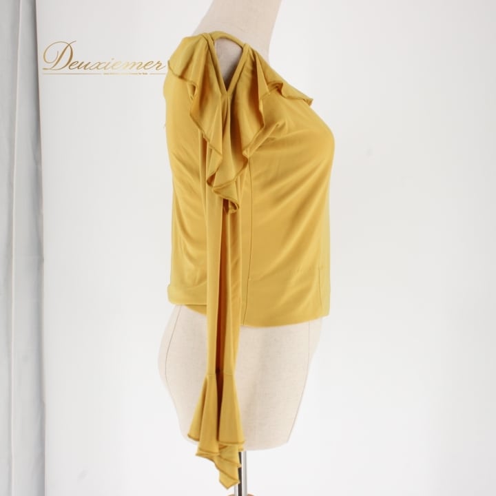 #社交ダンス衣装 #ダンストップス #ダンスファッション #マスタードイエロー #シンプルデザイン #着回し便利 #女性用コーデ #トルソー #ダンススタイル #衣装 #ダンスウエア #ダンス衣装 #モダンダンス #フィット感 #ストレッチ素材 #おしゃれ #エレガント #ダンスライフ #パフォーマンス #ダンススタジオ #ENUTSU