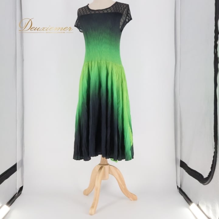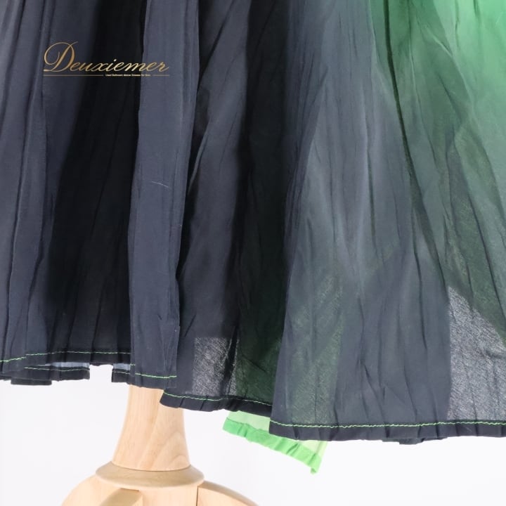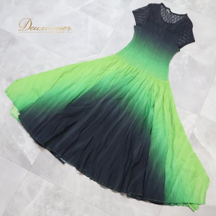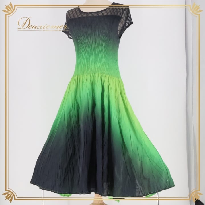 フラダンス 衣装 ワンピース ドレス グリーン系 ブラック系 グラデーション シースルー 透け感 無地 シンプル かわいい 華やか 鮮やか きれい 上品 エレガント 緑 黒 ハワイアン アロハ フラ ダンス レッスン 練習 おしゃれ パーティードレス 軽量