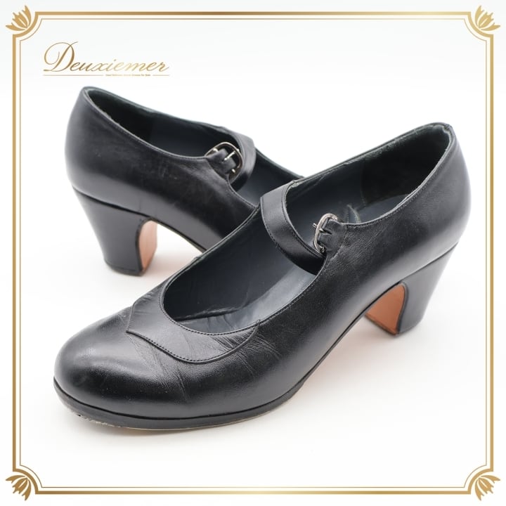 フラメンコ 衣装 シューズ 36 1/2サイス ブラック系 ドンフラメンコ DON flamenco スペイン製 靴 くつ ヒール レディース 黒 無地 シンプル ストラップ ステージ イベント ダンスシューズ ダンス衣装