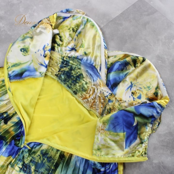 #ドレス #ワンピース #ファッション #カジュアル #レディース #夏コーデ #花柄 #ブルー #イエロー #デザイン #dazzyqueen #トレンド #おしゃれ #スタイル #美しい #モテ服 #伸縮性 #特別な日 #パーティー #ENUTSU