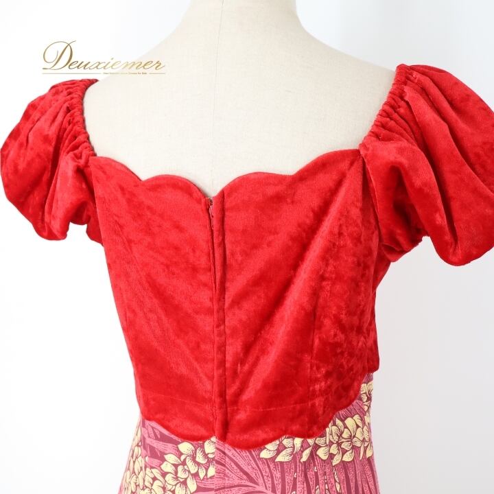 #フラダンス #フラダンス衣装 #ワンピース #ドレス #アロハスタンダード #日本製 #華やか #レッド #ベロア #高級感 #ポリエステル #綿 #女性用トルソー #サイズ6 #背面ファスナー #伸縮性なし #衣装 #フラダンスドレス #フラスタイル #パーティー #ENUTSU