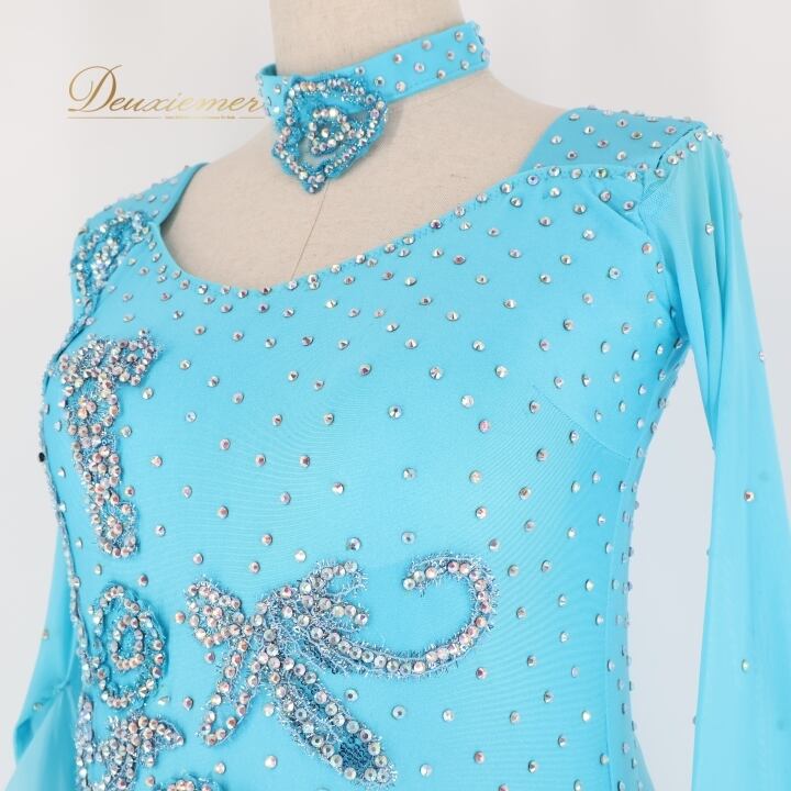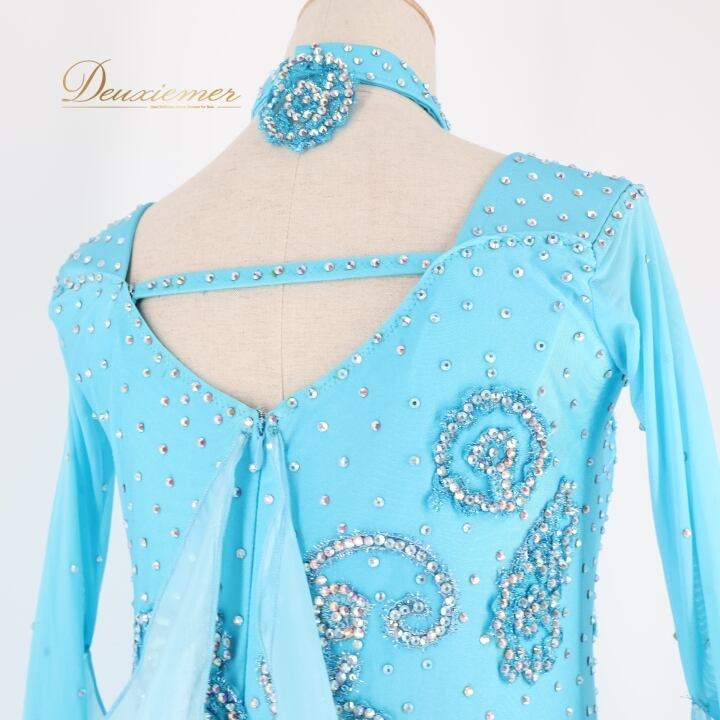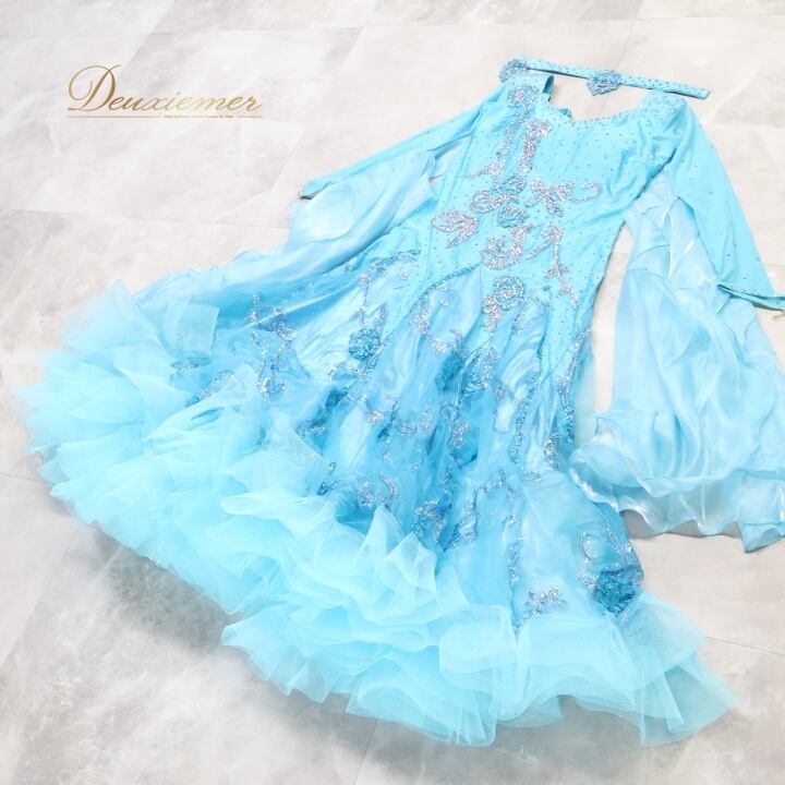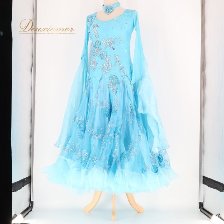 #社交ダンス #ダンス衣装 #ワンピース #ドレス #フロート #水色 #華やか #スカート重ね #XLサイズ #背面ファスナー #伸縮性 #胸パッド #ダンススタイル #パーティードレス #ダンスファッション #女性用トルソー #ファッションコーデ #トルソー使用 #ダンスウェア #ENUTSU