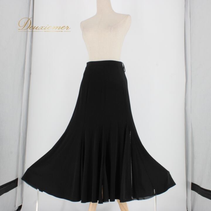 #社交ダンス #ダンス衣装 #スカート #モノトーン #ブラック #シンプルデザイン #ウエストゴム #伸縮性 #ダンスファッション #女性用トルソー #ポリエステル #ポリウレタン #着回し #ダンススタイル #ダンス小物 #パーティー衣装 #フォーマル #フルートスカート #踊り #ENUTSU