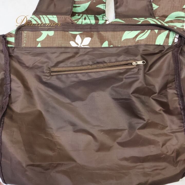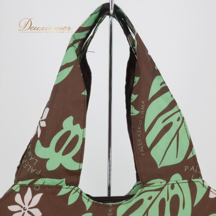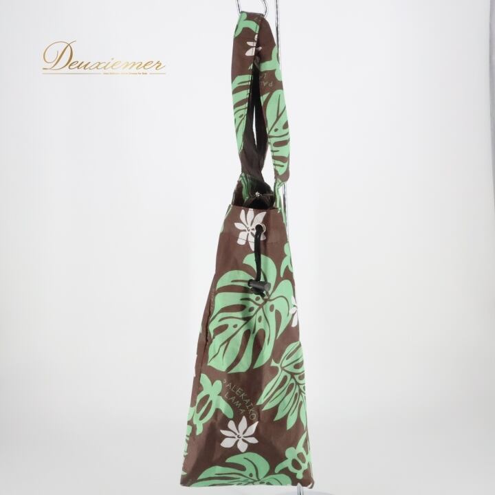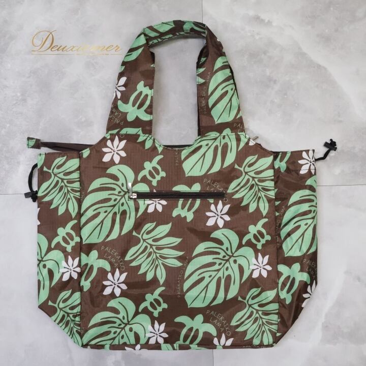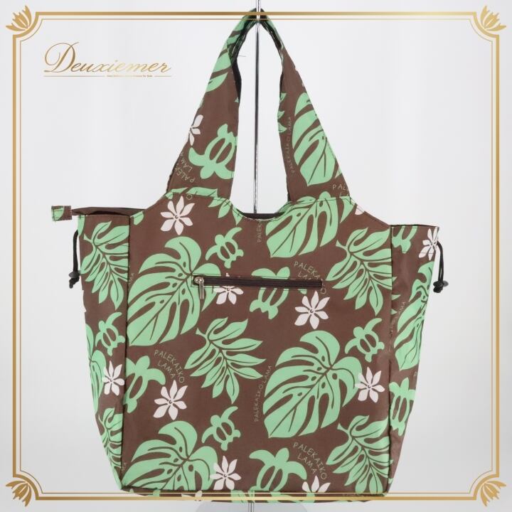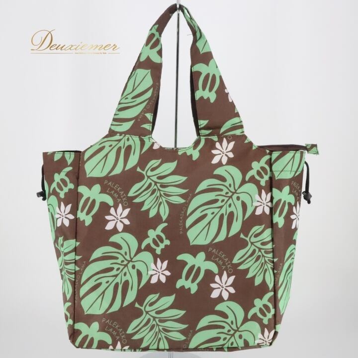フラダンス 小物 バッグ ブラウン系 PALEKAIKO LAMA トートバッグ モンステラ柄 ティアレ柄 ホヌ柄 かわいい 華やか 茶 緑 白 ハワイアン アロハ ハワイアンプリント フラ ダンス ビーチ 旅行 レジャー チャック付き 軽量 日常使い