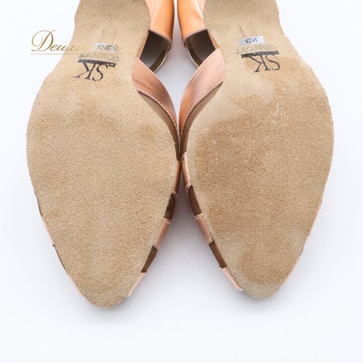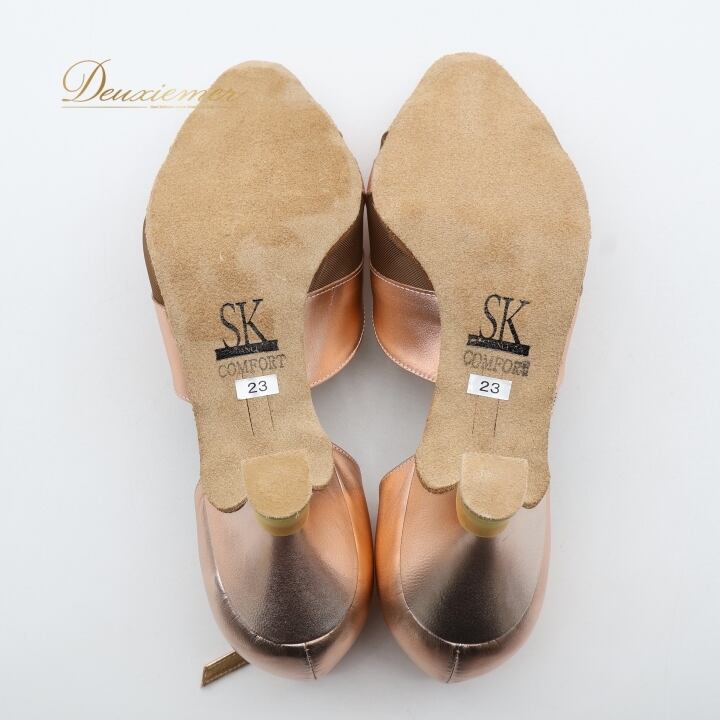 社交ダンス シューズ 23cm ピンク系 SK 靴 くつ ヒール レディース ラインストーン スタンダード ラテン オープントゥ ピンクゴールド系 光沢 キラキラ 練習 レッスン イベント ステージ パーティー 上品 かわいい ストラップ