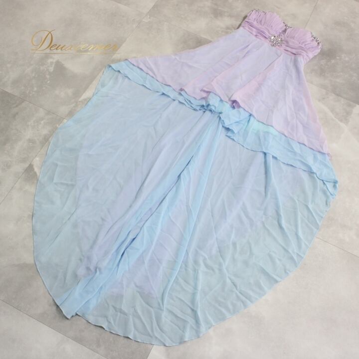 #ドレス #ファッション #ライトブルー #パープル #華やか #ビジュー #パーティードレス #結婚式 #コーディネート #おしゃれ #ドレスアップ #女性用 #サイズ9号 #特別な日 #スタイル #ビジューデザイン #カジュアル #伸縮性 #ポリエステル #ENUTSU