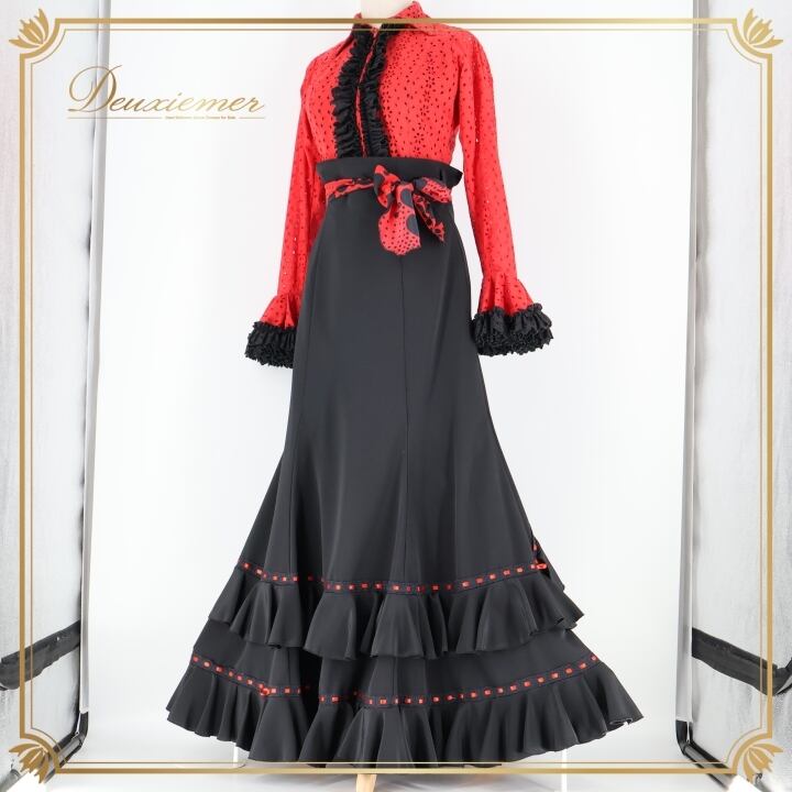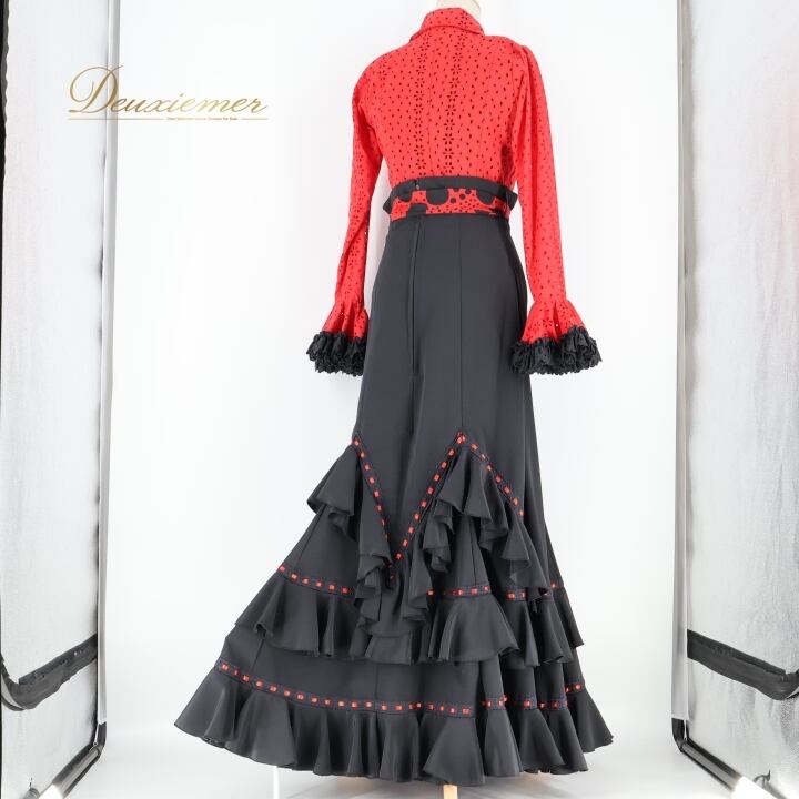 フラメンコ 衣装 マンサニージャ Manzanilla トップス ブラウス ファルダ スカート ツーピース セットアップ 赤 黒 ボランテ フリル レース ダンス パーティ 発表会 ブラック系 レッド系 フラメンコドレス セットアップ衣装 パーティ 衣装セット 大人用 レディース 踊り用 衣装 フリルブラウス ダンス衣装 おしゃれ 可愛い レディース衣装 発表会衣装