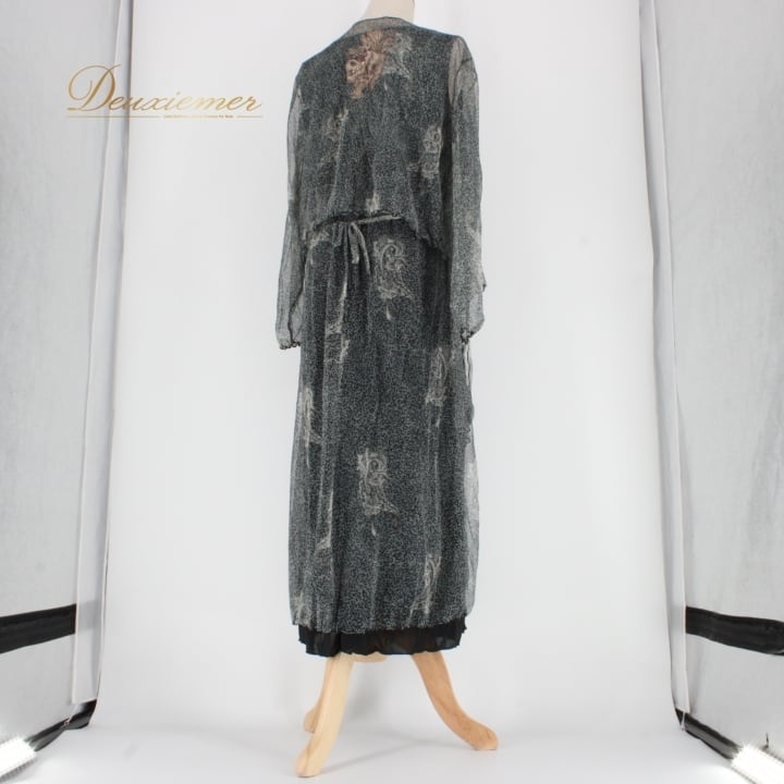 平置き実測:総丈約119cm(裾~肩部まで)、身幅約47cm、ウエスト約45cm~