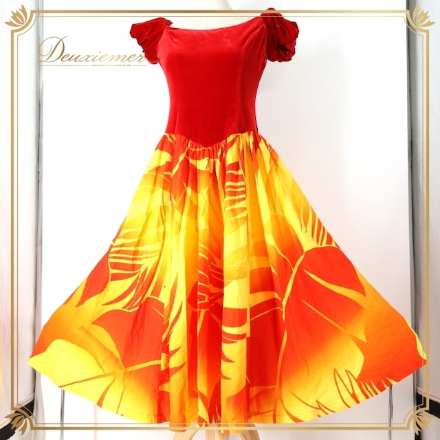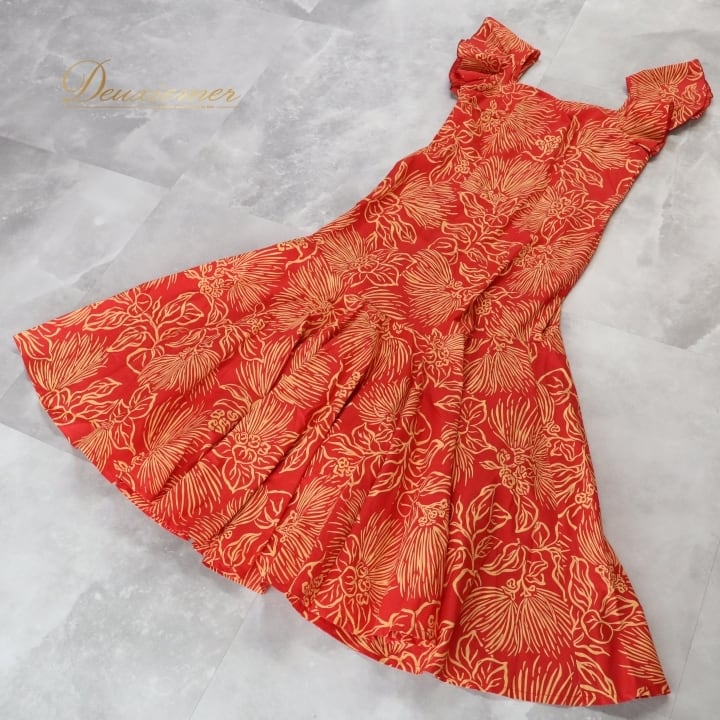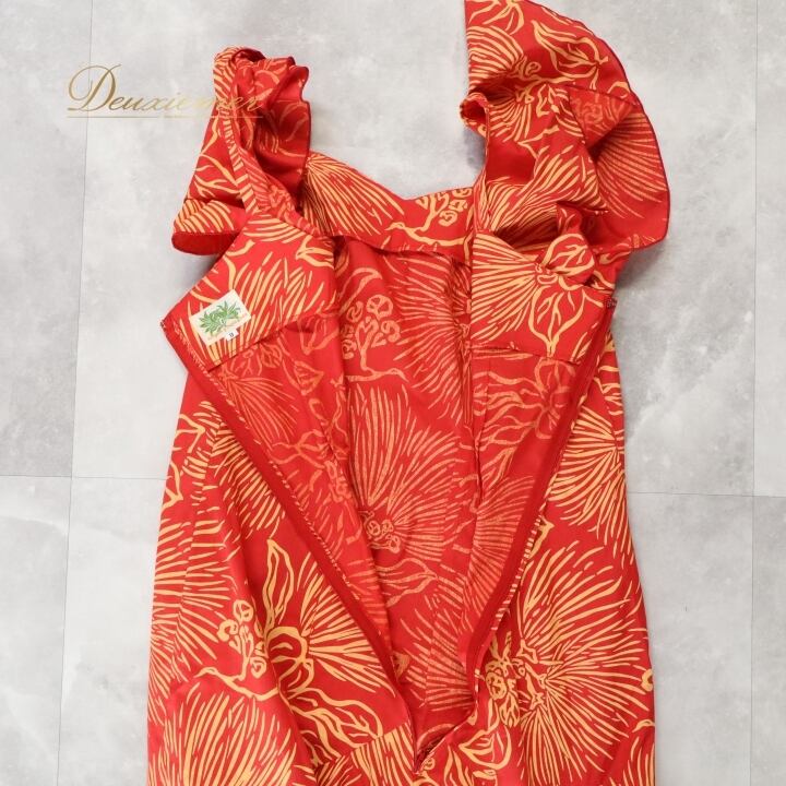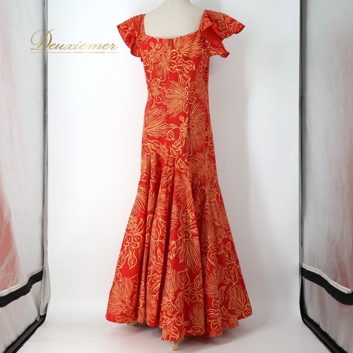 #フラダンス #衣装 #ドレス #ワンピース #ALOHA #アロハスタンダード #日本製 #フリル袖 #レッド #イエロー #ダンス衣装 #フラダンス衣装 #女性用 #ファッション #夏コーデ #ビーチスタイル #パーティー #ハワイアン #CuteOutfit #ENUTSU