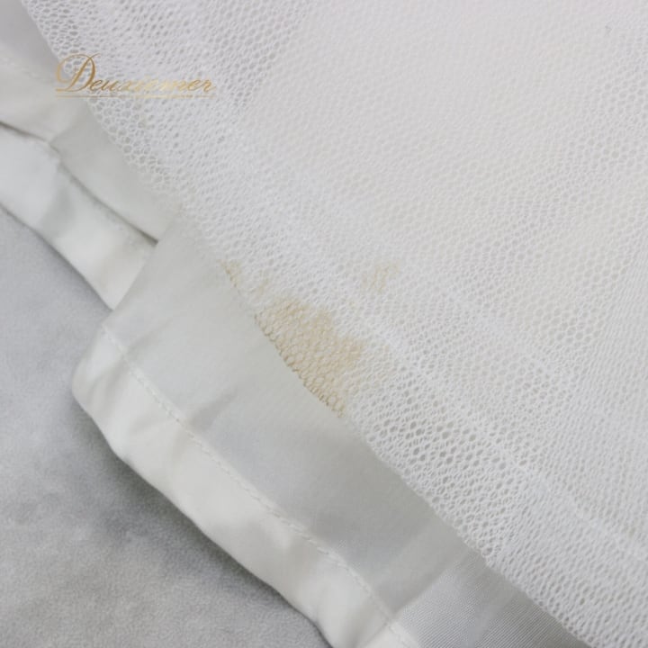 裾に汚れ有り。お写真では分かりにくいですがスカートの内側に薄く黄色い汚れ有り(画像参照)