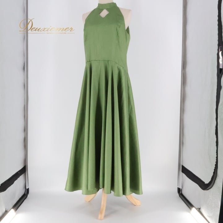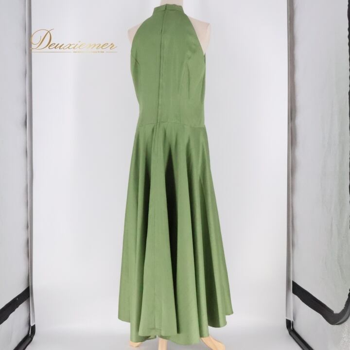 フラダンス 衣装 ワンピース ドレス メネフネプランテーション グリーン系 MENEHUNE PLANTETION ノースリーブ 肌見せ ハイネック ワンカラー かわいい きれい 華やか 鮮やか 明るい 緑 ハワイアン アロハ フラ ダンス レッスン 練習