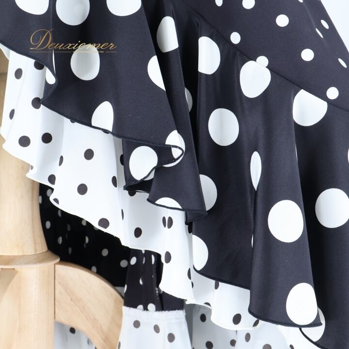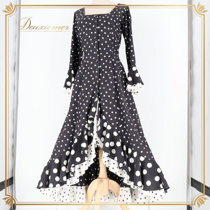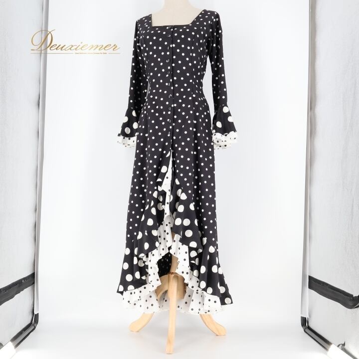 フラメンコ 衣装 ワンピース ドレス 水玉 ドット 黒 白 フリル ボランテ STALL Co.,Ltd ボウタイ ダンス パーティ 発表会 レトロ ブラック系 ホワイト系 おしゃれ 女性用 フォーマル 衣装ダンス イベント ステージ衣装 コスチューム