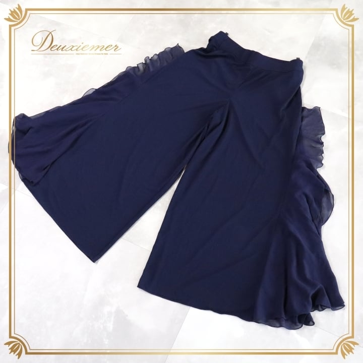 #社交ダンス #ダンス衣装 #パンツ #ネイビー #フリル #日本製 #Chacott #RoyalDance #ダンスファッション #フィット感 #サイズM #ウエストゴム #透け感 #ポリエステル #ポリウレタン #スタイルアップ #大人っぽい #ダンスコーデ #パフォーマンス衣装 #快適な着心地 #ENUTSU